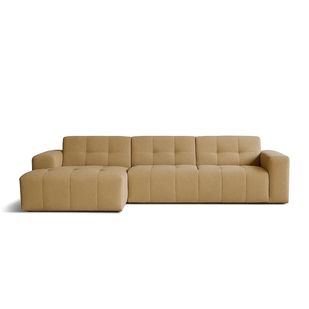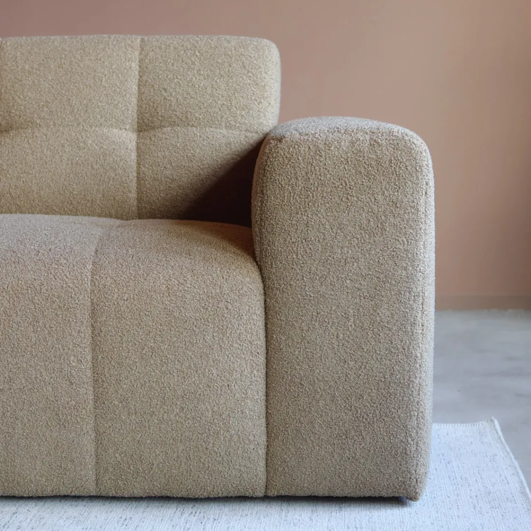 De Bank Wave Links Teddy Bruin is ontworpen voor veelzijdigheid, bestaande uit twee losse delen: een divan en een 3-zits gedeelte. Met een eenvoudig klikmechanisme worden deze delen naadloos samengevoegd.