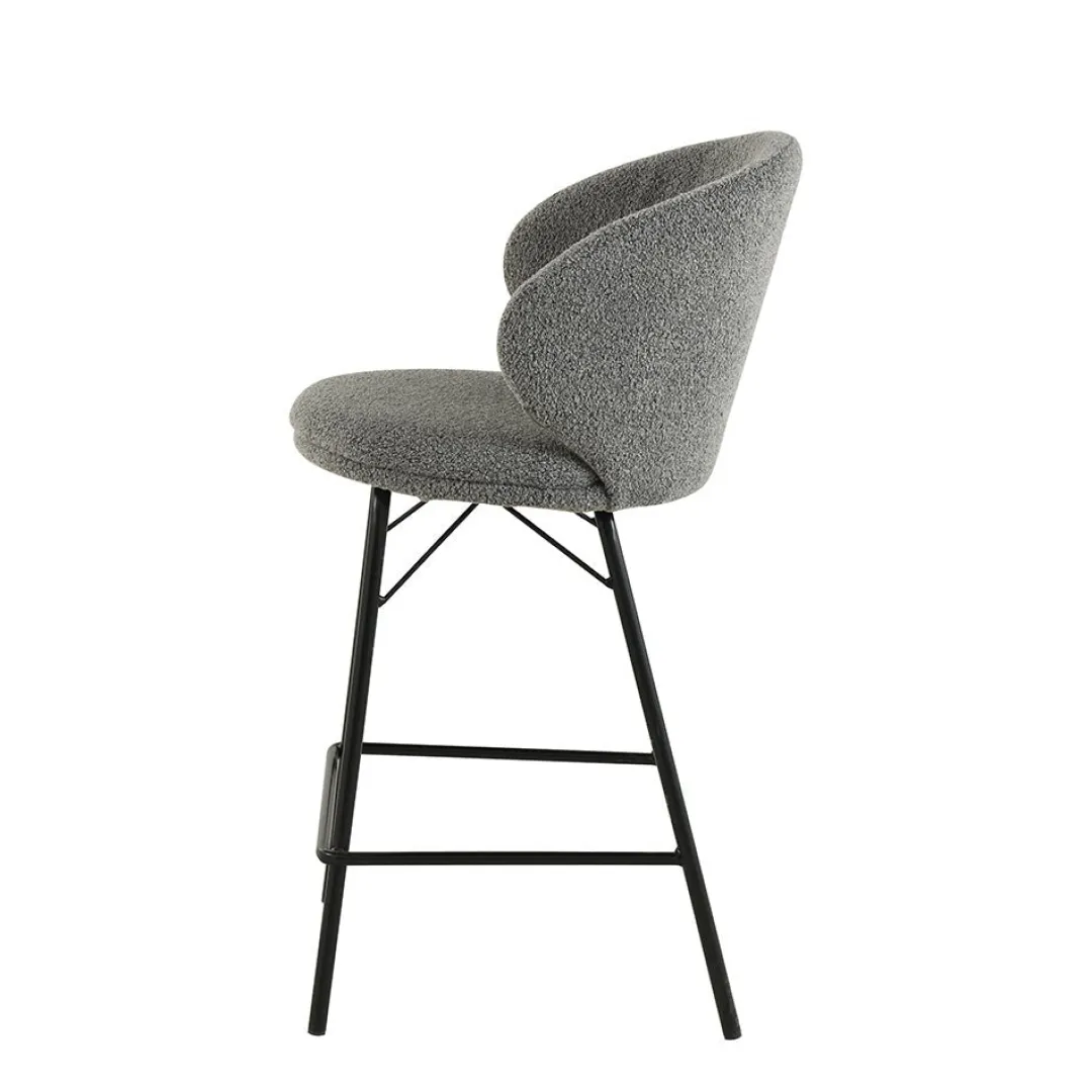 De Barkruk Talence is uitgevoerd in een prachtige donkergrijze bouclé stof, die niet alleen luxe aanvoelt maar ook een warme uitstraling geeft aan je ruimte. Het zitvlak is comfortabel en nodigt uit tot langdurig zitten, terwijl de rugleuning zorgt voor extra ondersteuning.