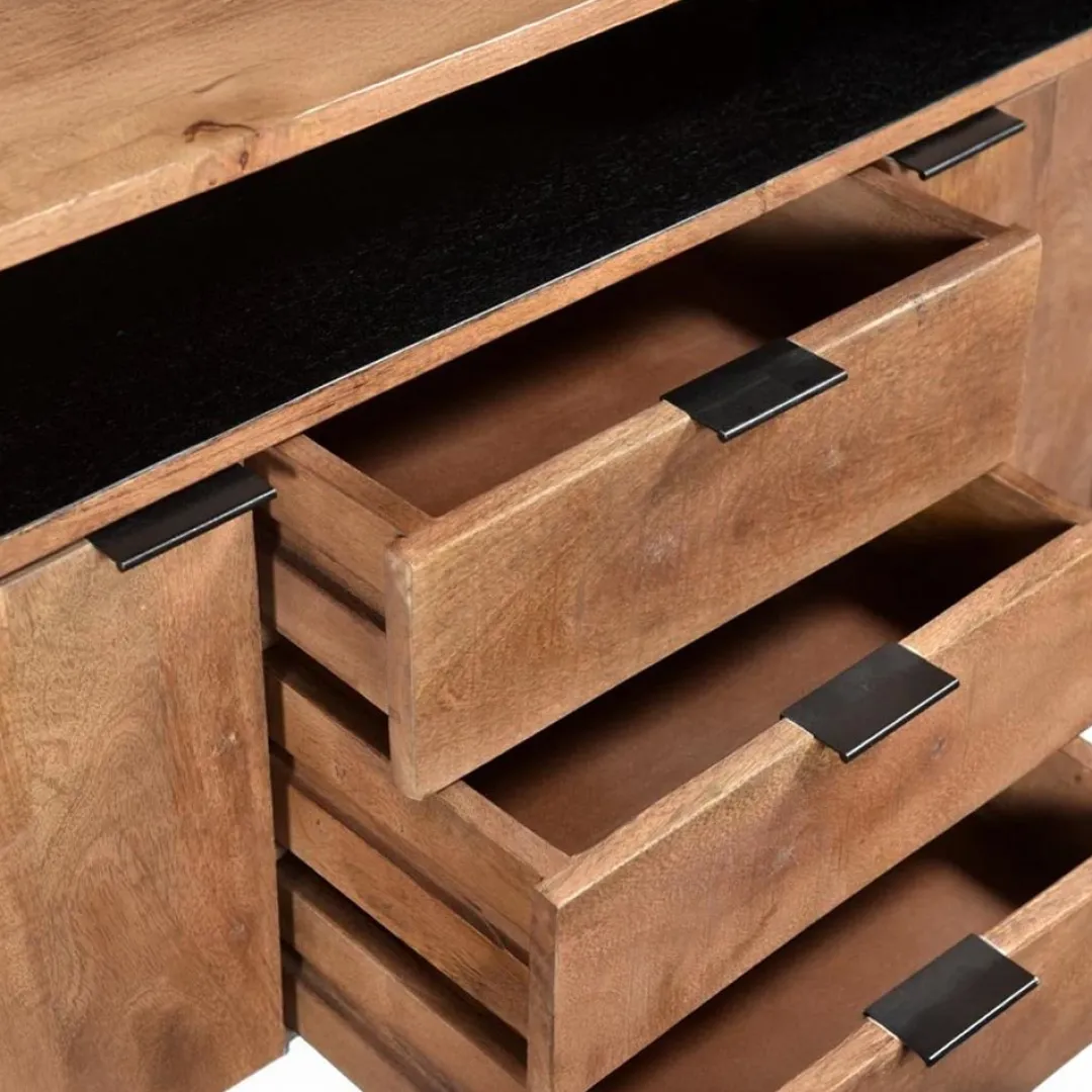 Ontdek de tijdloze elegantie van de kasten uit de Valdez Collectie van Livingfurn, waar meubelen gemaakt zijn van mangohout met een zwart stalen onderstel. Het minimalistische design en verhoogde onderstel geven een Scandinavische uitstraling aan deze collectie. Transformeer je interieur met de perfecte balans tussen stijl en functionaliteit.
