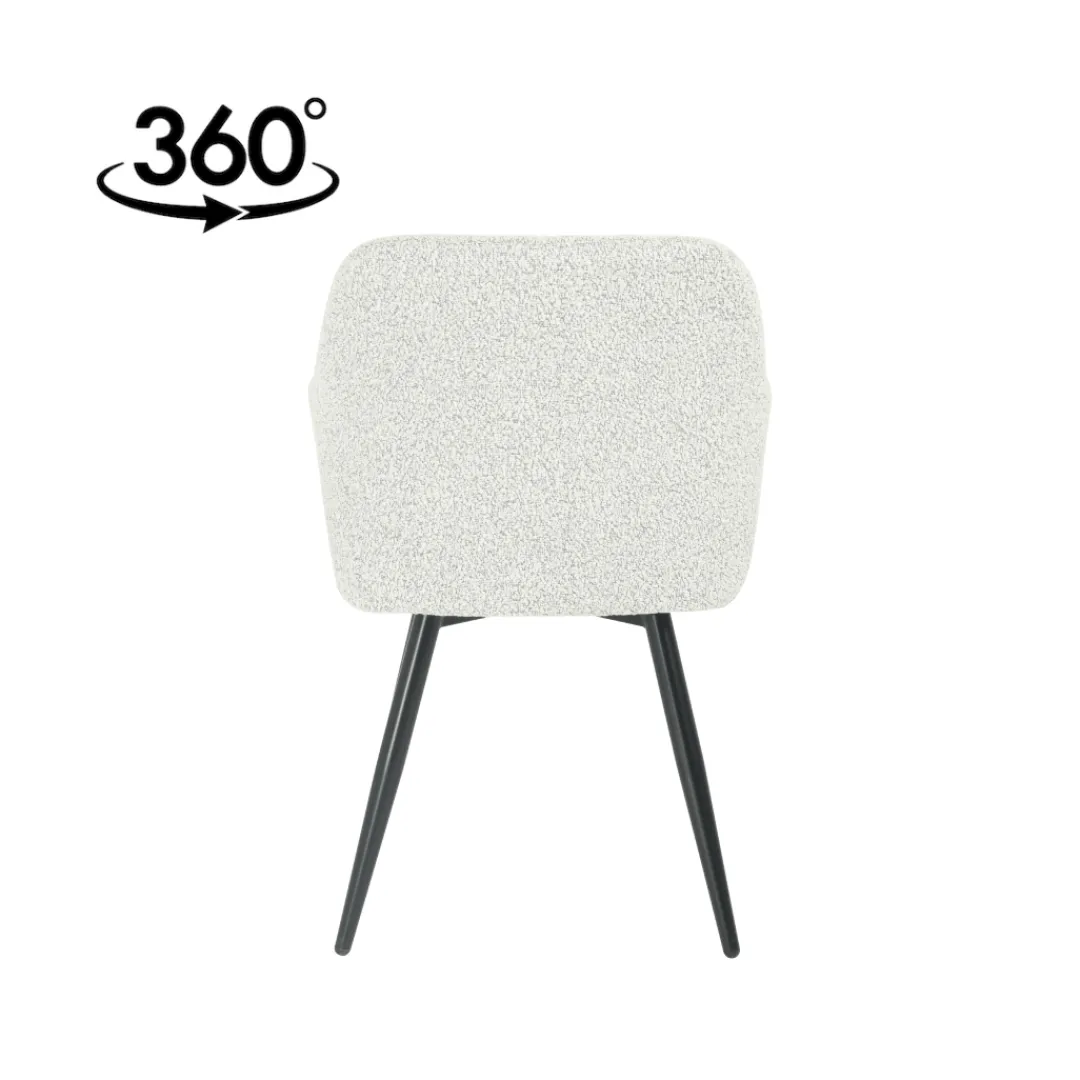 De zwarte poten van het onderstel zorgen voor een eigentijdse touch en bieden stevige ondersteuning. Combineer de Amiens eetkamerstoel in beige met een houten eettafel voor een natuurlijke en gezellige sfeer in je eethoek.