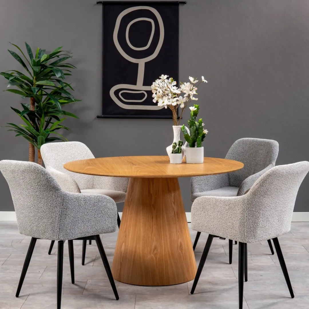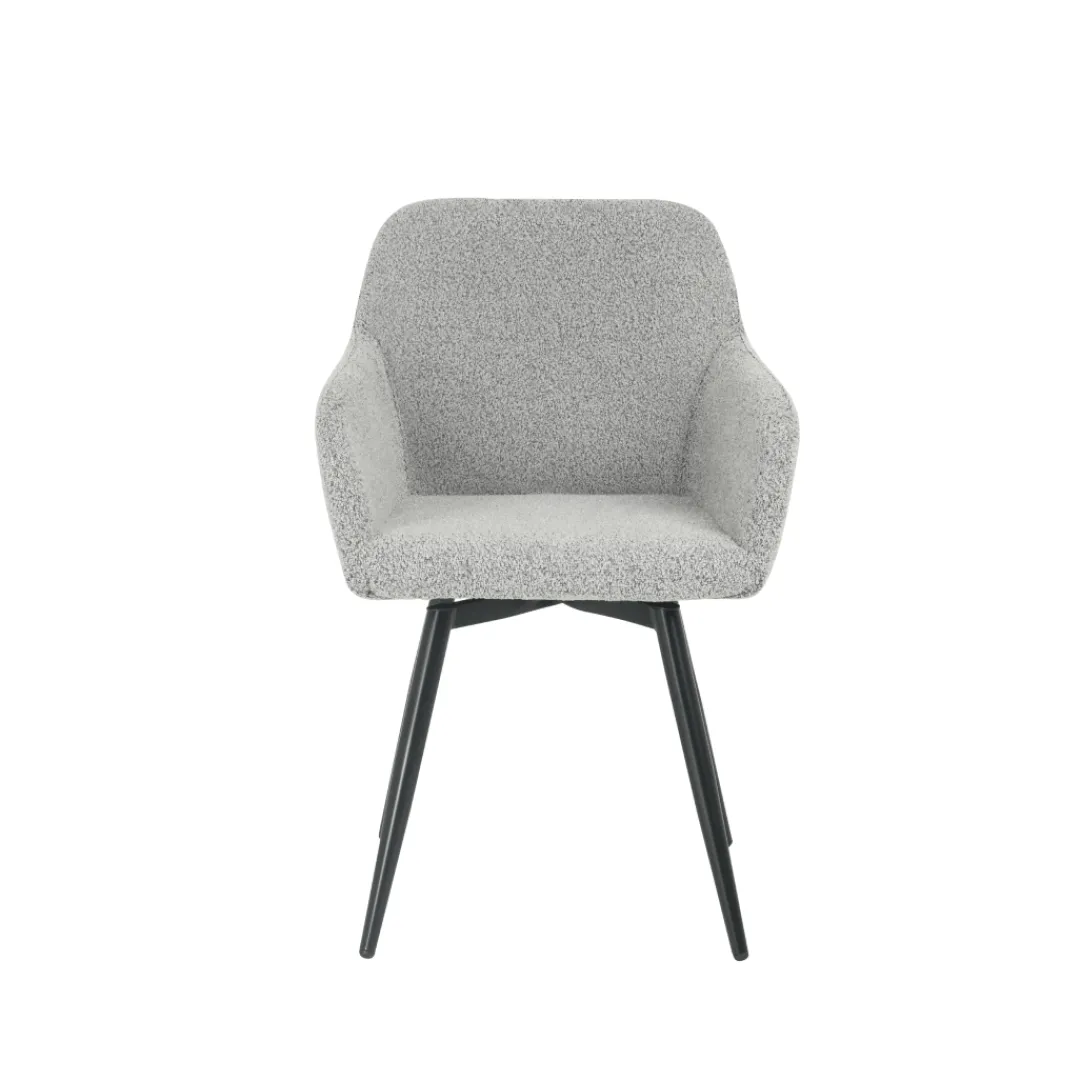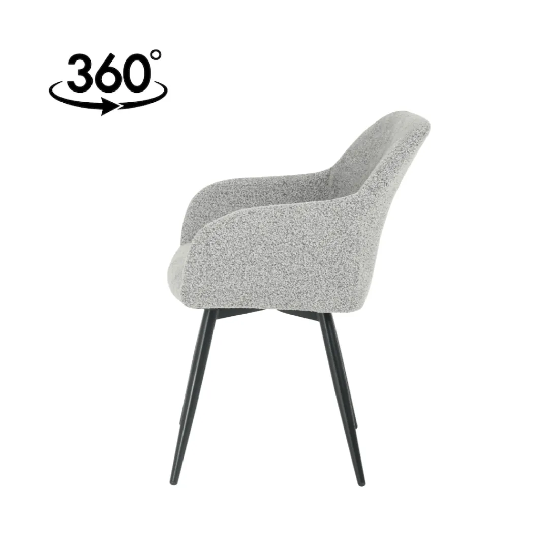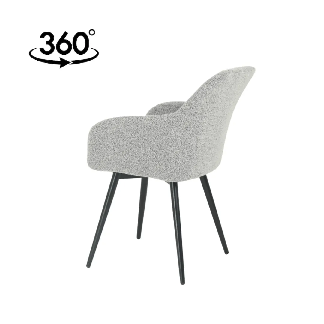 Voeg een vleugje lichtheid en elegantie toe aan je eetkamer met de Amiens eetkamerstoel in de kleur lichtgrijs. De teddy stof bekleding in deze subtiele tint creëert een ontspannen sfeer waarin je heerlijk kan tafelen.