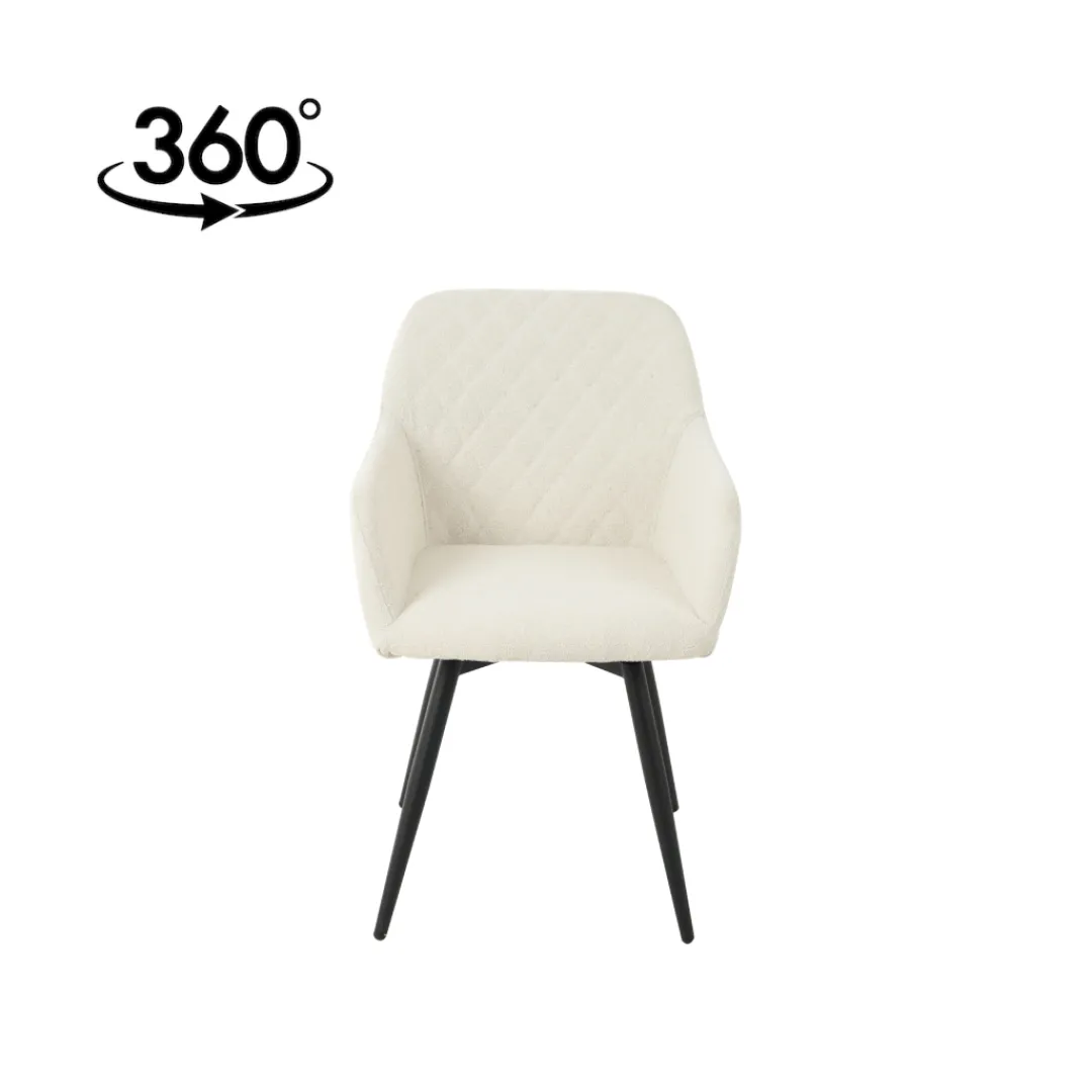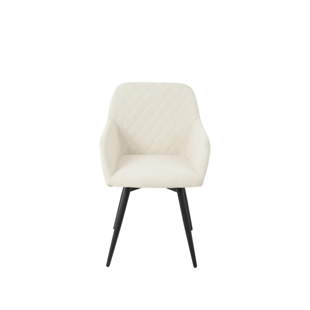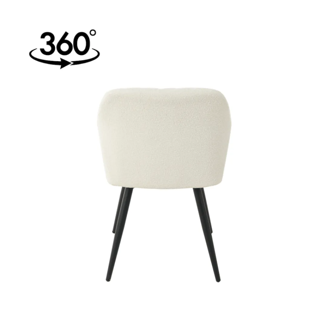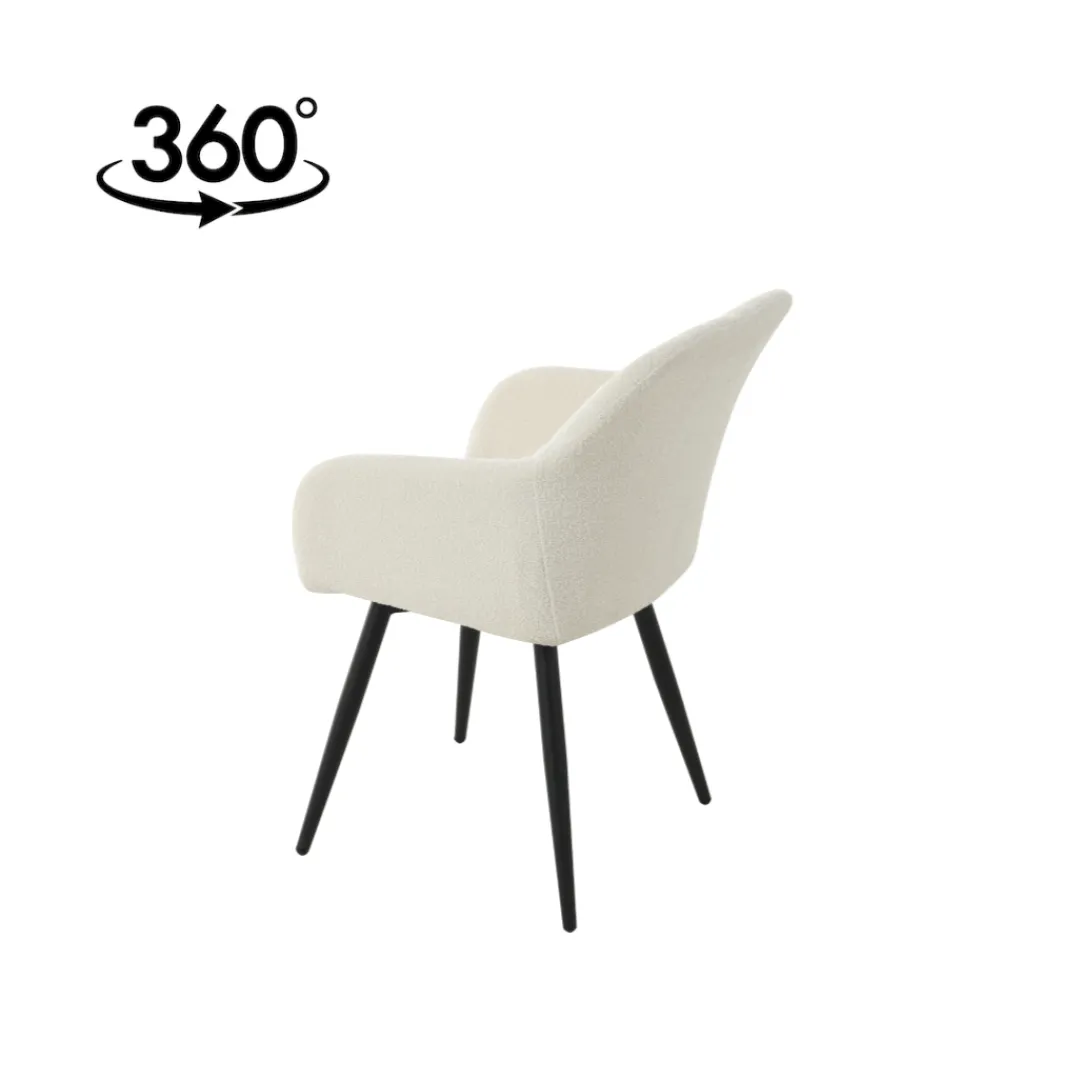 Ga voor een tijdloze en frisse uitstraling in je eetkamer met de Amiens eetkamerstoel in de kleur wit. De zachte teddy stof bekleding in deze heldere kleur brengt een gevoel van ruimte en lichtheid in je interieur.