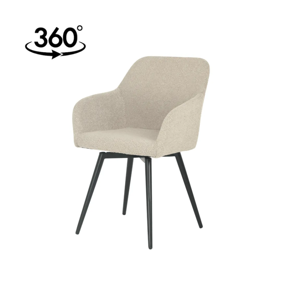 Breng een vleugje natuurlijke warmte in je eetkamer met de Amiens eetkamerstoel in de kleur zand. De teddy stof bekleding in deze aardse tint zorgt voor een gezellige en huiselijke sfeer.
