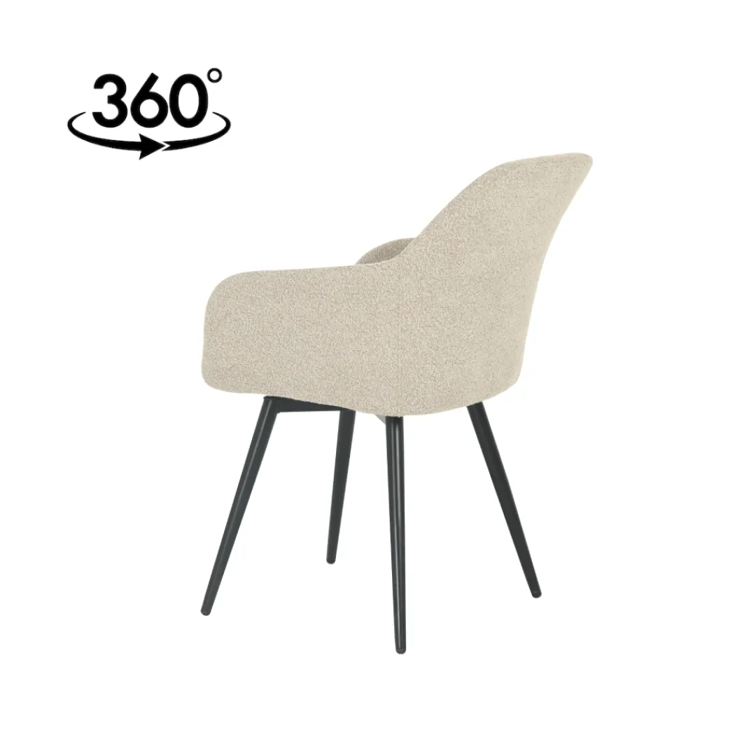De zwarte poten van het onderstel geven de stoel een eigentijdse look en bieden stevige ondersteuning. Combineer de Amiens eetkamerstoel in zand met een houten eettafel voor een harmonieus geheel.