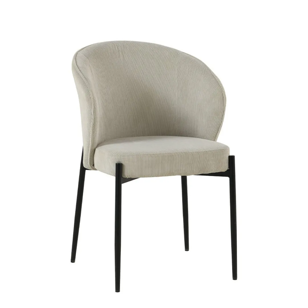 De beige ribstof voegt textuur toe aan het geheel, terwijl het zwarte gepoedercoate metalen onderstel een solide en duurzame basis vormt. Dit resulteert niet alleen in eigentijdse charme, maar ook in stabiliteit en betrouwbaarheid voor dagelijks gebruik.