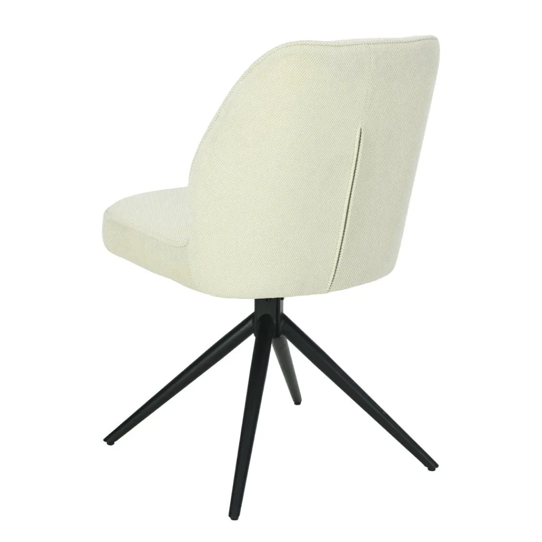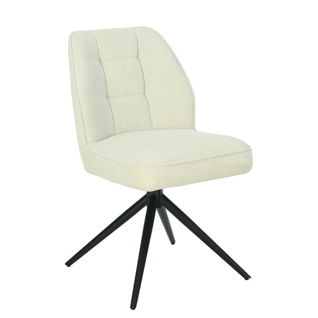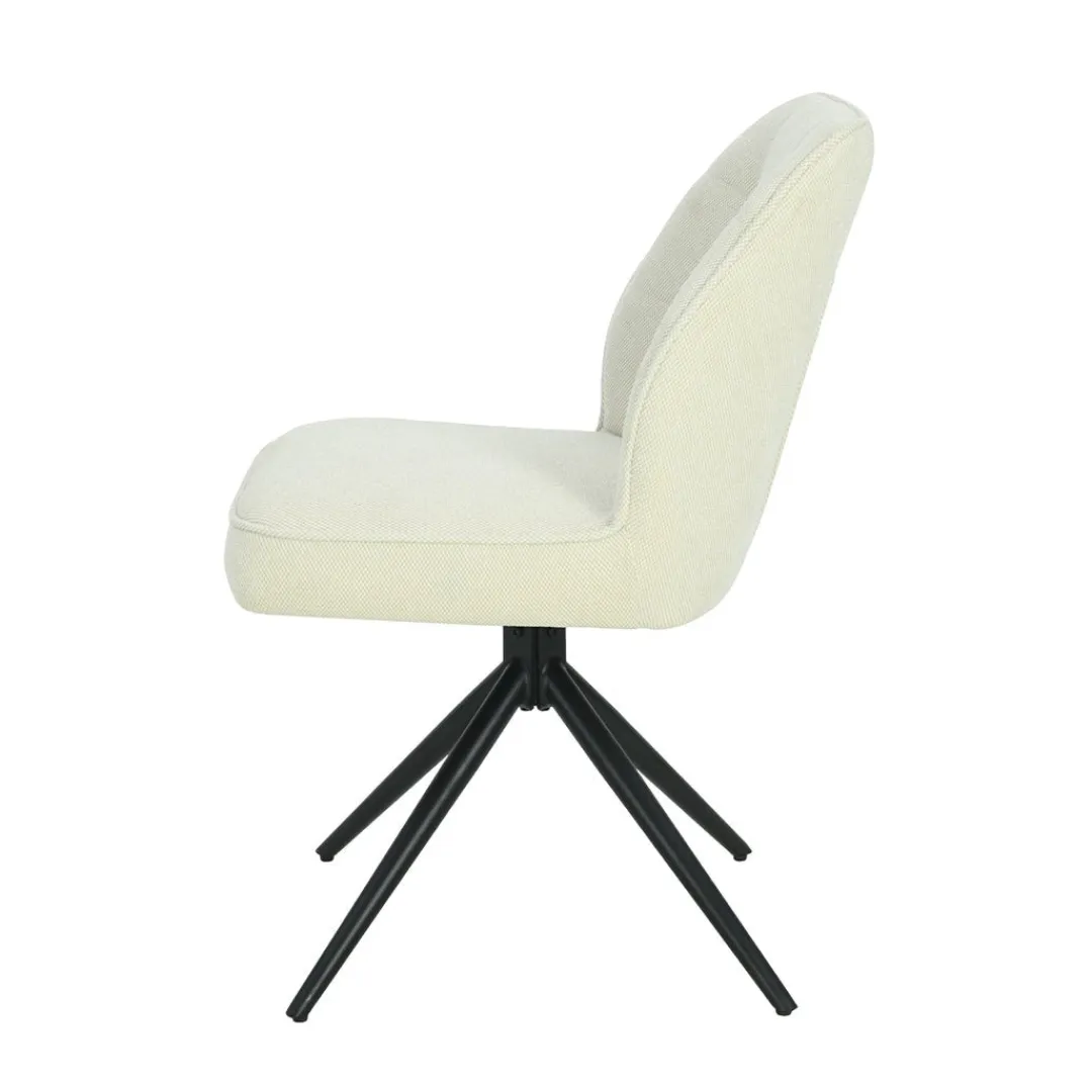 Eetkamerstoel Bayonne Lichtgrijs voegt een moderne en frisse uitstraling toe aan je eetkamer. De lichtgrijze stof heeft een zachte look, terwijl het zwart gepoedercoate metalen onderstel zorgt voor een stoer contrast. De zitting is draaibaar, wat extra comfort en bewegingsvrijheid biedt tijdens het zitten.