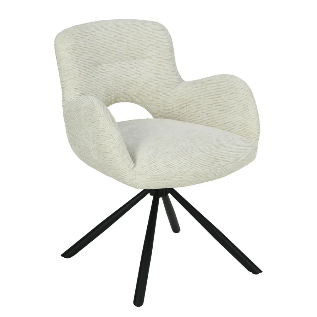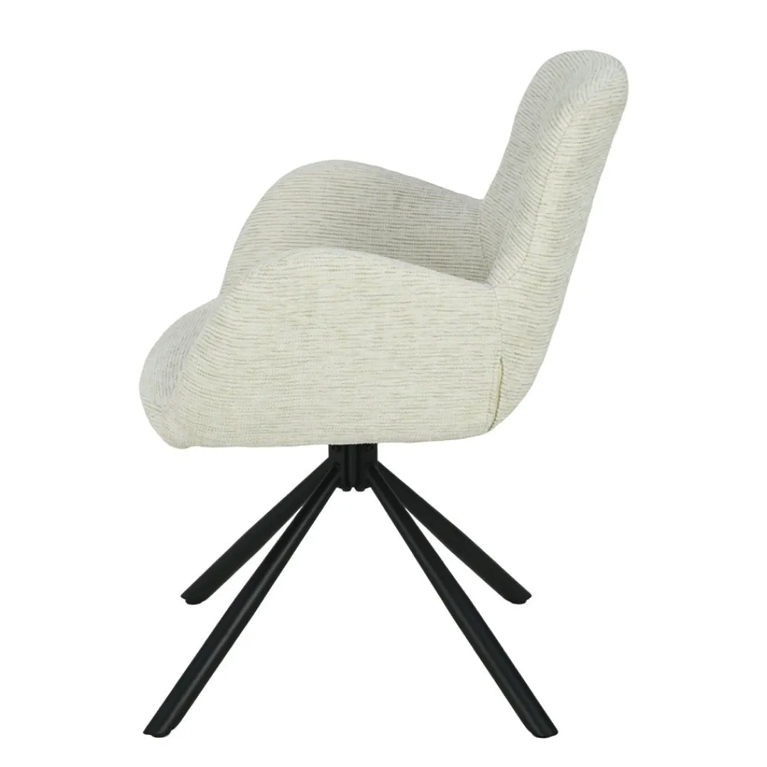 Eetkamerstoel Blois Wit is een stijlvolle en comfortabele aanvulling op je interieur. De witte stoffen bekleding geeft de stoel een moderne en verfijnde uitstraling, terwijl het zwart gepoedercoate metalen onderstel een stoer accent toevoegt. De armleuningen zorgen voor extra comfort en ondersteuning.