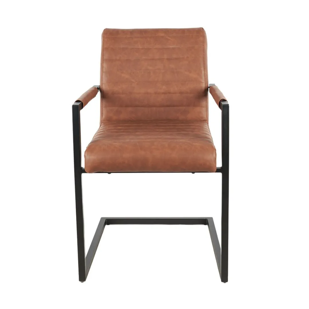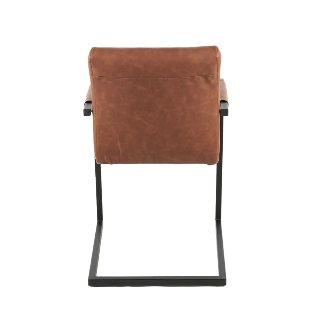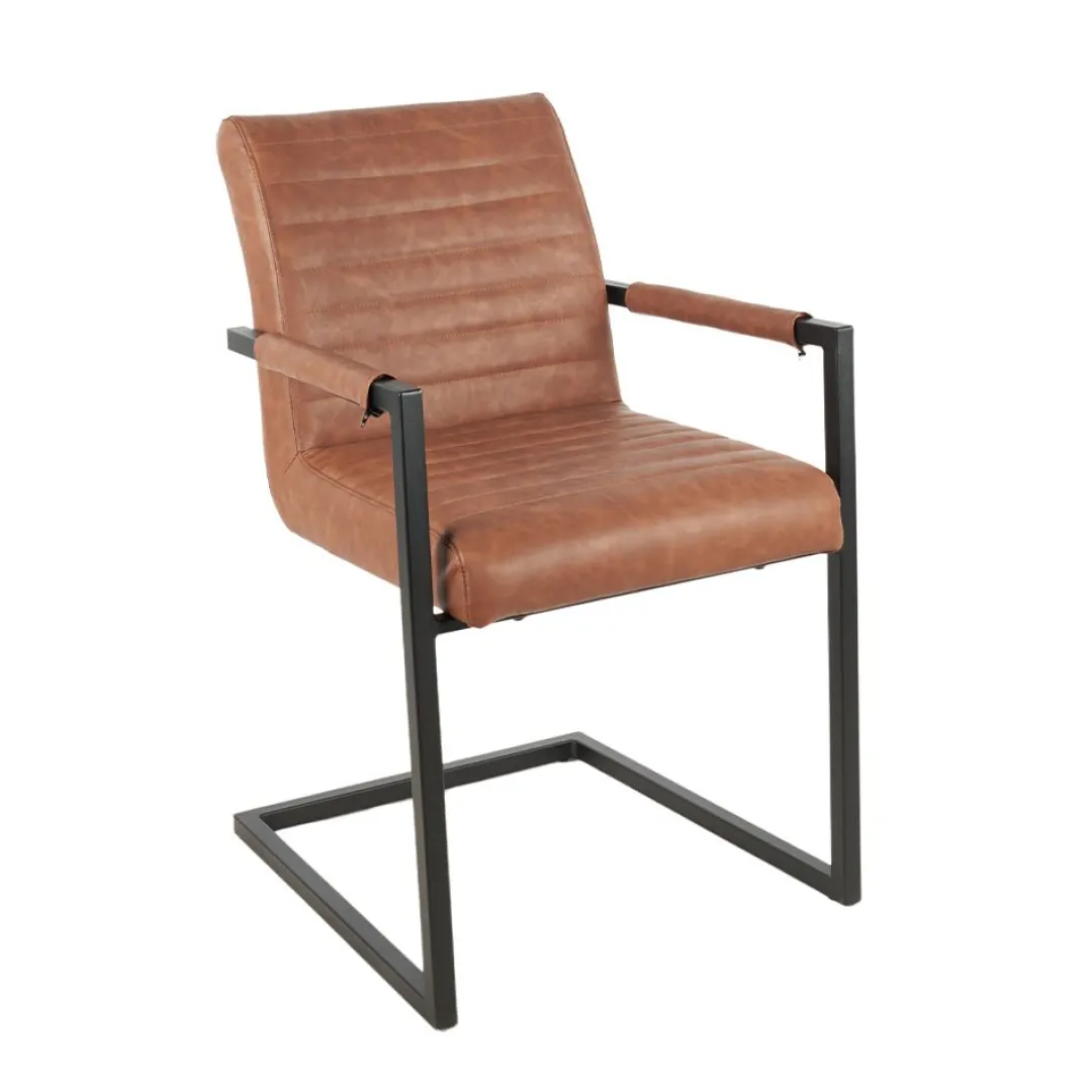 De Eetkamerstoel Caen Cognac brengt stijl en comfort samen. Het kunstleer in een warme cognackleur geeft de stoel een chique uitstraling, die perfect past in zowel moderne als industriële interieurs. Het zwarte gepoedercoate metalen onderstel biedt stevige ondersteuning en geeft de stoel een stoere look.