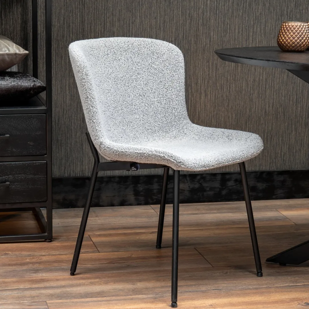 Voeg een vleugje elegantie toe aan je eetkamer met de Lille eetkamerstoel in de kleur beige. De bouclé stof bekleding in deze warme tint nodigt uit tot comfortabel en ontspannen tafelen.
