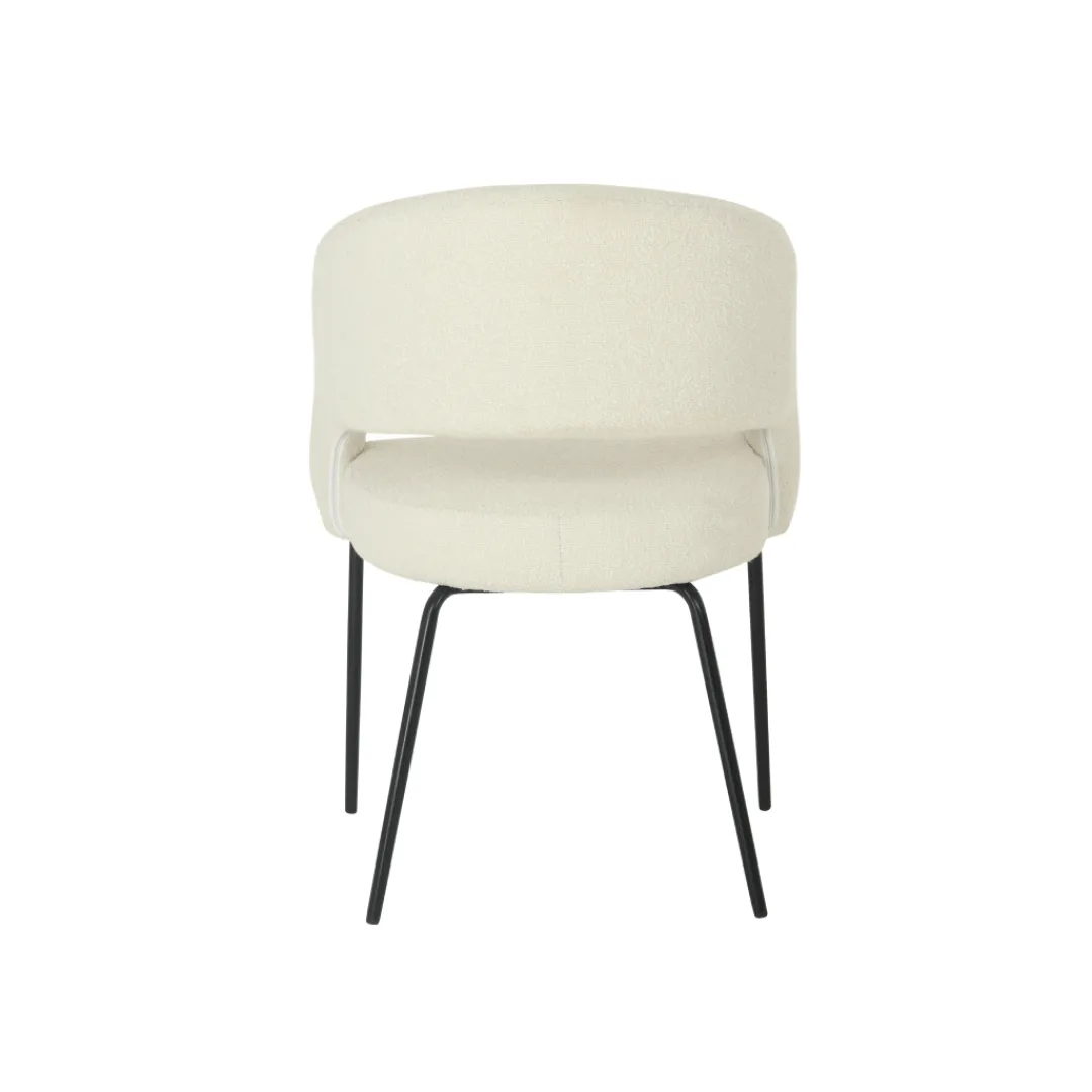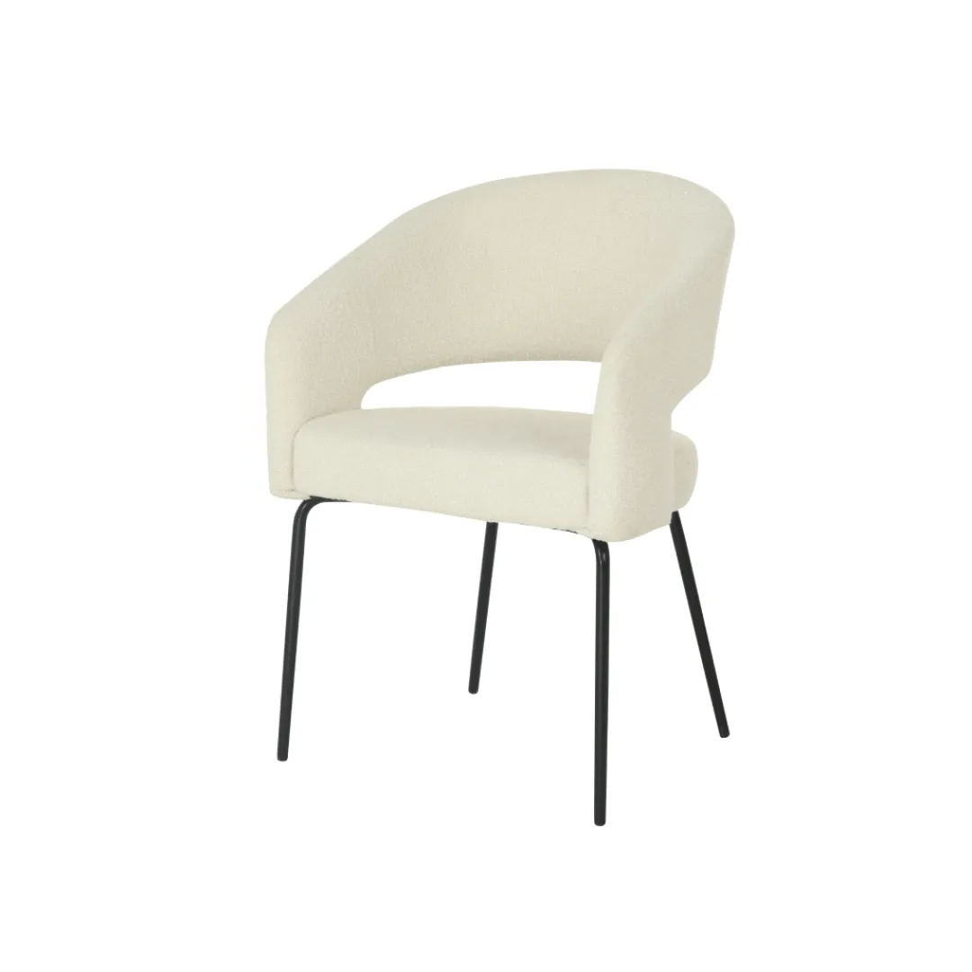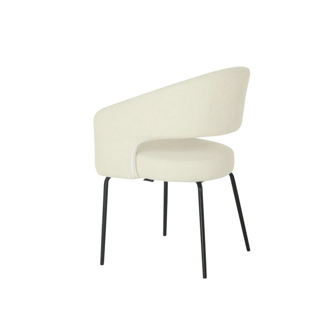 Ga voor tijdloze elegantie in je eetkamer met de Rennes eetkamerstoel in de kleur wit. De zachte teddy stof bekleding in deze heldere tint voegt een vleugje luxe en verfijning toe aan jouw interieur.