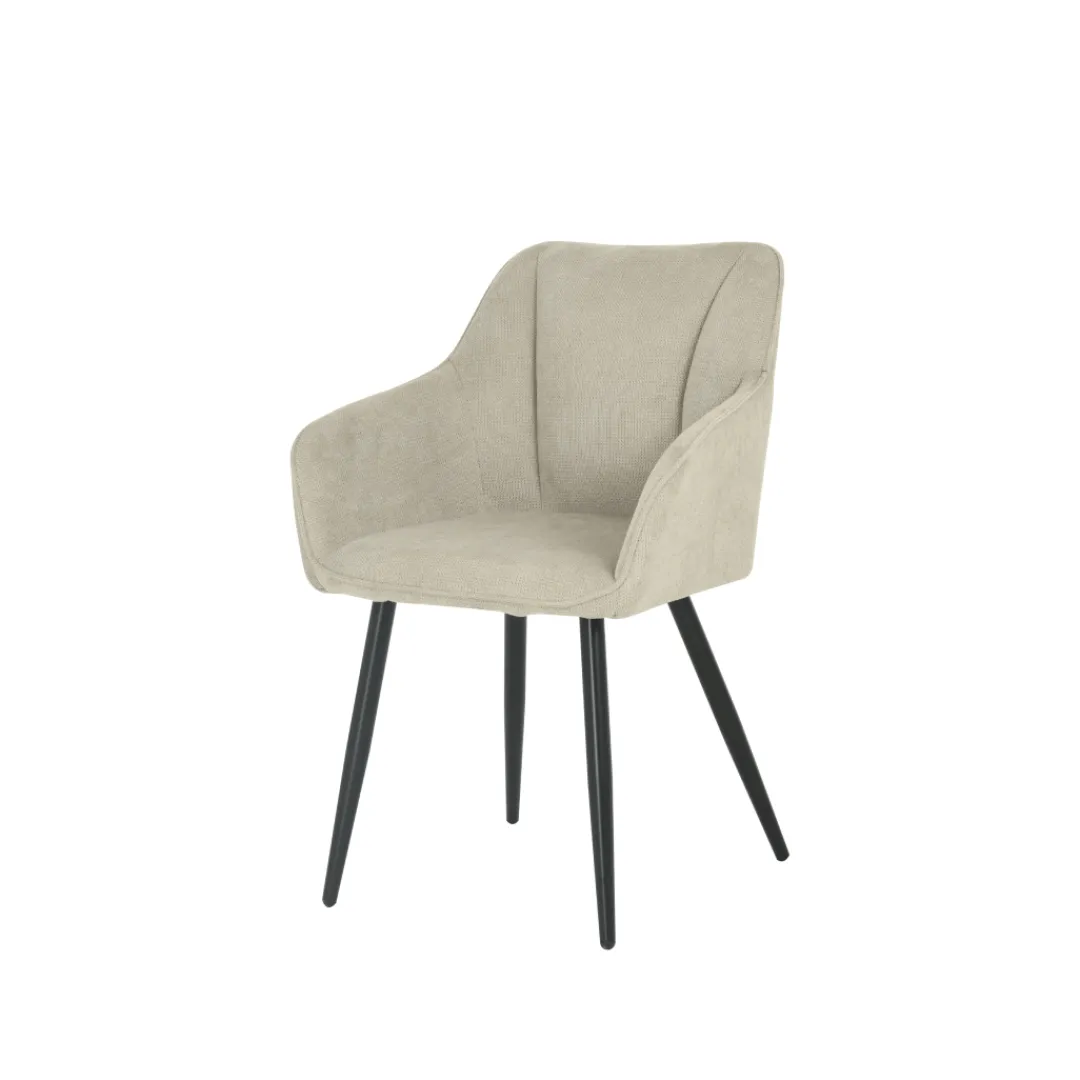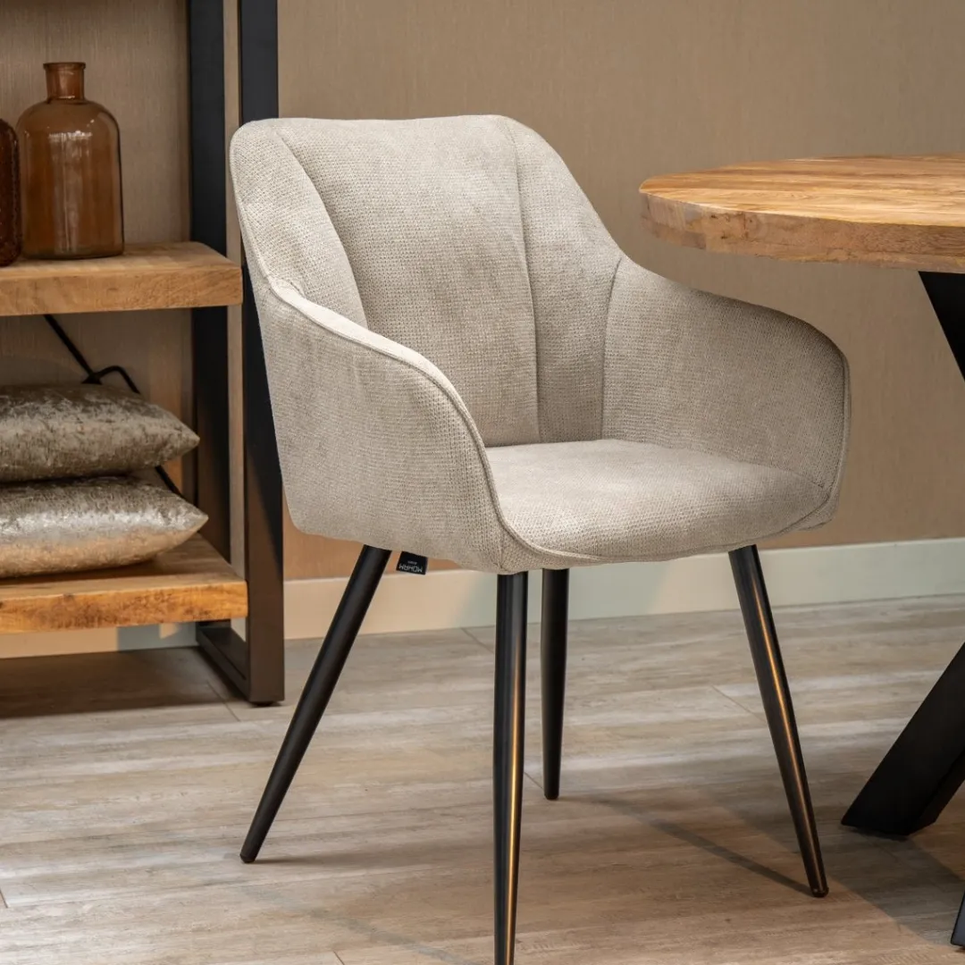 De Eetkamerstoel Rouen, gehuld in zacht zandkleurig linnen, vormt een elegante verrijking voor elke inrichting.