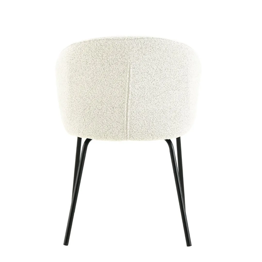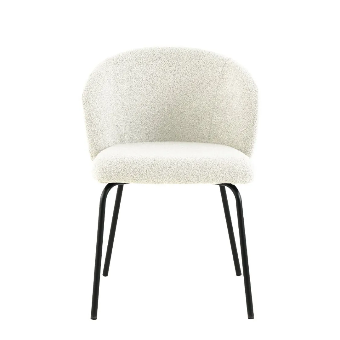Ontdek de sublieme combinatie van stijl en comfort met onze eetkamerstoel Tulle, gehuld in witte bouclé stof. Deze prachtige stoel voegt een vleugje verfijning toe aan elke ruimte, of het nu een eigentijdse eetkamer, een chic kantoor of een knusse keukenhoek betreft.