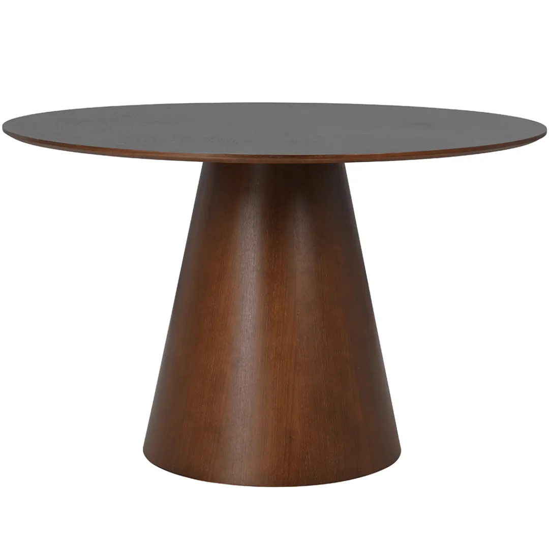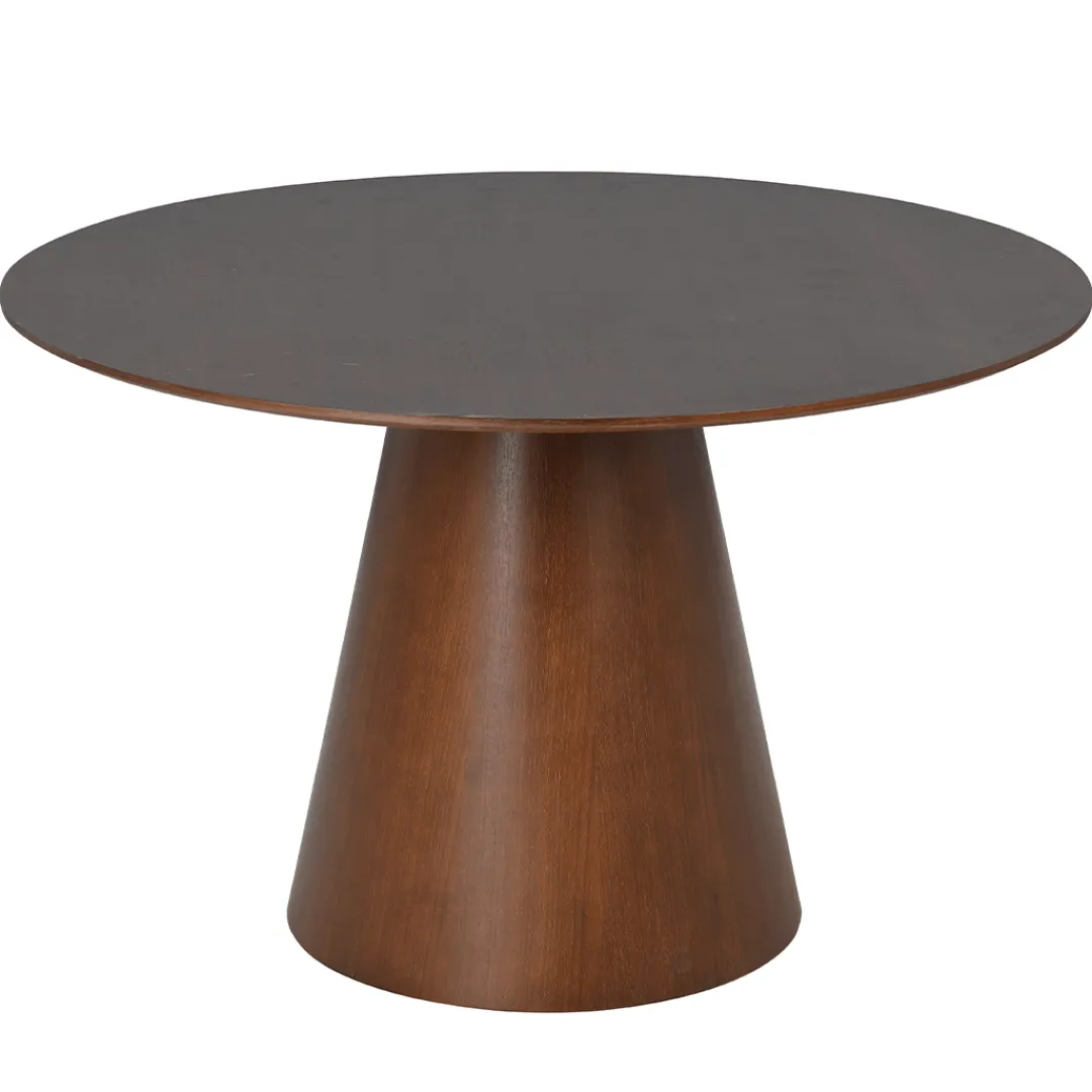 Betreed de wereld van geraffineerde elegantie met onze Adelaide ronde Eettafel van 120 cm, vervaardigd uit hoogwaardig Wood Veneer. Deze prachtige eettafel fungeert als het perfecte middelpunt van jouw eetruimte en voegt onmiskenbaar tijdloze charme toe aan je interieur, dankzij de elegante laklaag in een diepe walnootkleur.