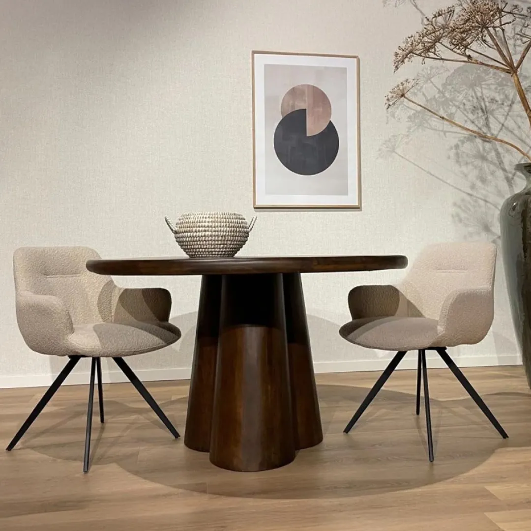 Ervaar de pracht van de Brix Clubs eettafel van Brix, een ronde schoonheid van donkerbruin mangohout. De unieke tafelpoot voegt een extra dimensie toe, waardoor deze eettafel een echte eyecatcher is in jouw woonkamer. Stijlvol en opvallend, brengt de Brix Clubs eettafel karakter in je interieur.