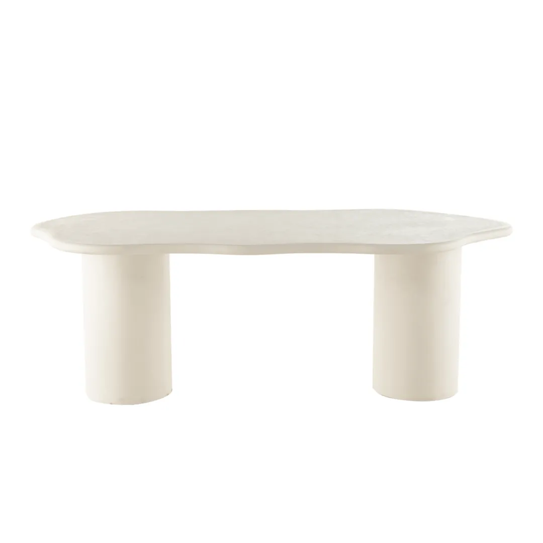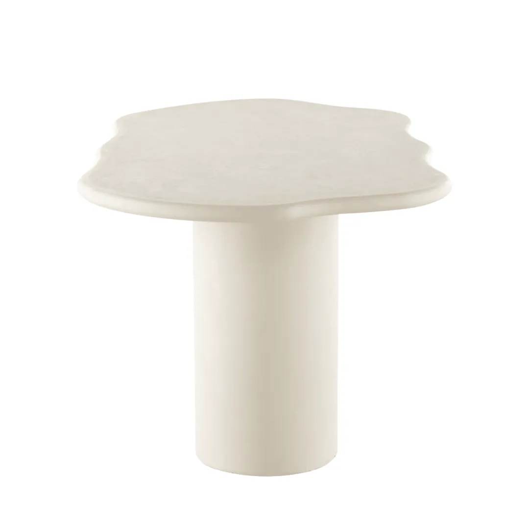 Eettafel Organisch Savannah is een elegante tafel die direct sfeer brengt in je eetkamer. Het ovale blad en de stevige voet zijn volledig uitgevoerd in microcement en afgewerkt in een zachte wit tint. Deze combinatie geeft de tafel een moderne, maar tegelijkertijd rustige uitstraling die mooi aansluit bij verschillende interieurstijlen.