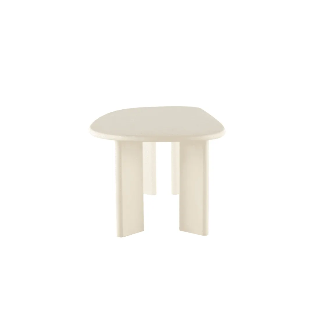 De Eettafel Savannah Organisch 210 cm is een stijlvolle toevoeging aan je interieur. Het organisch gevormde blad en de vier stevige poten zijn volledig uitgevoerd in hoogwaardig microcement met een strakke witte kleur. Dit geeft de tafel een moderne en verfijnde uitstraling die prachtig past in eigentijdse woonruimtes.