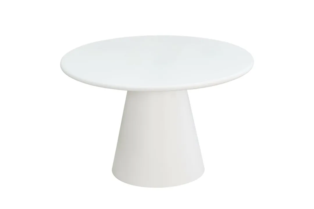 Eettafel Savannah is een echte eyecatcher in je interieur. Zowel het ronde blad als de stevige voet zijn volledig uitgevoerd in microcement en afgewerkt in een warme wit tint. Dit geeft de tafel een strakke, moderne uitstraling met een natuurlijke touch.