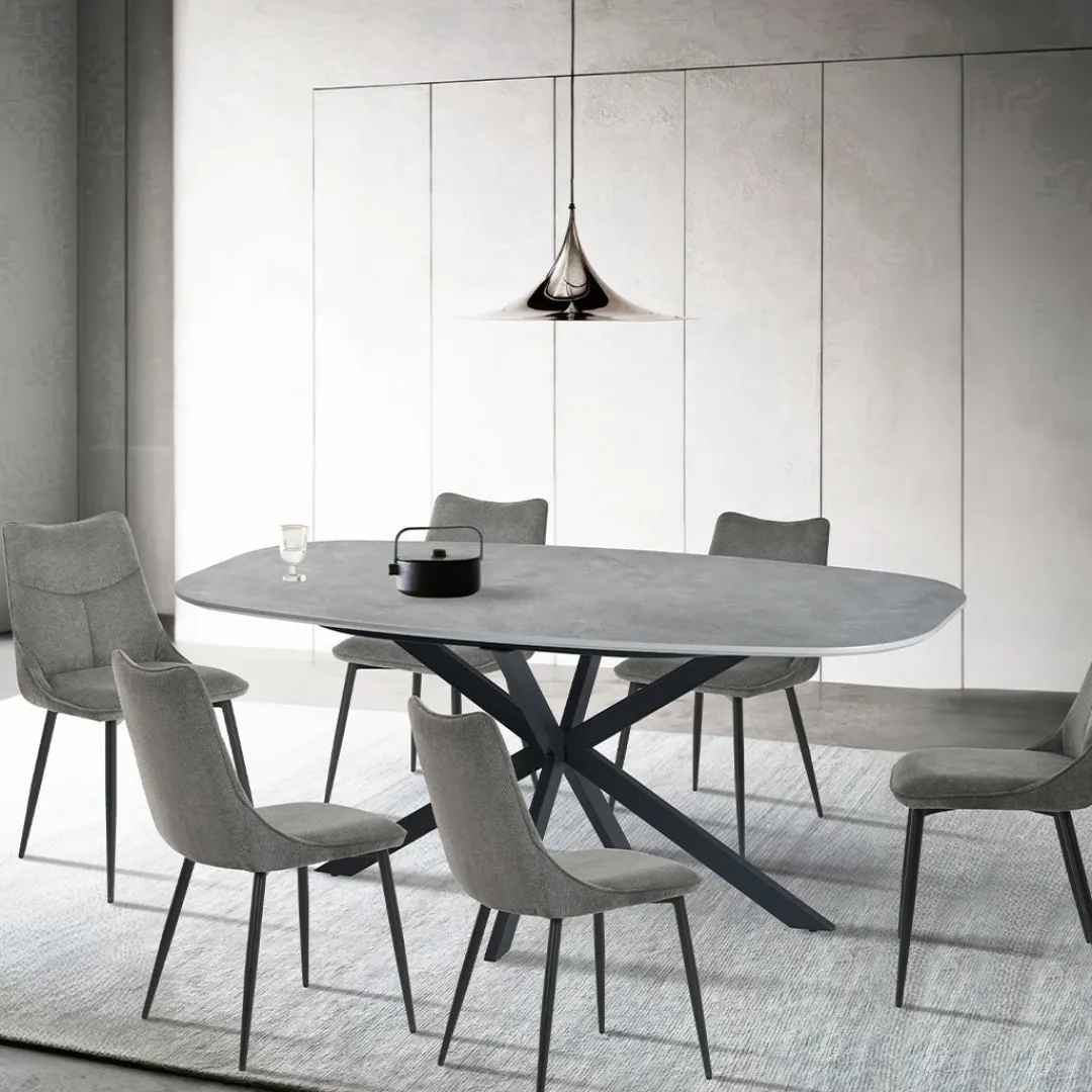Eettafel Santiago Melamine Deens Ovaal 180 cm is een moderne en stijlvolle tafel die perfect aansluit bij een eigentijds interieur. Het blad heeft een unieke Deens ovale vorm en is uitgevoerd in duurzaam melamine met een verfijnde grijze kleur. Dit geeft de tafel een strakke, maar warme uitstraling.