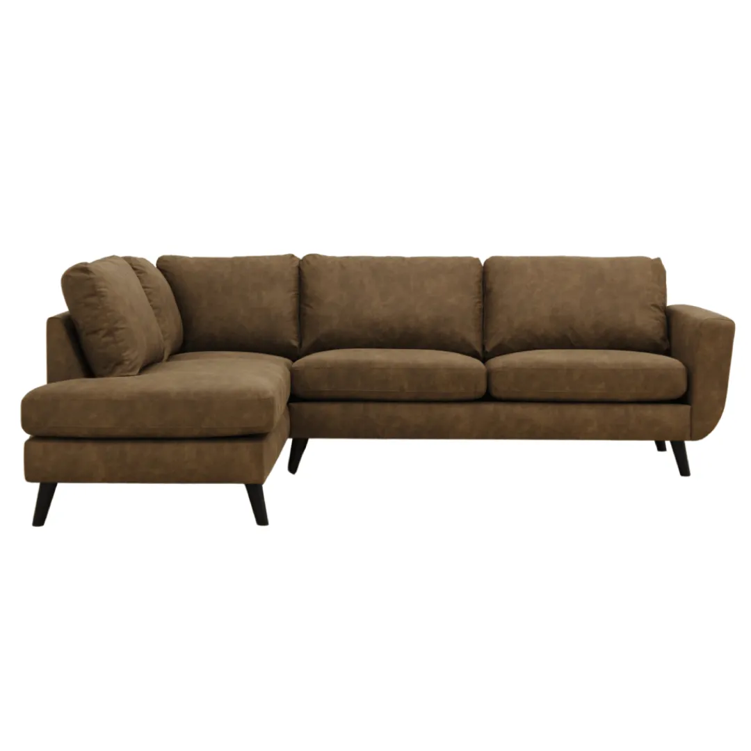 De 3-zits hoekbank Bonanza Links in bruin is een stijlvolle en comfortabele toevoeging aan je woonkamer. De warme bruine bekleding straalt rust en elegantie uit, waardoor de bank moeiteloos past binnen diverse interieurstijlen, van modern tot klassiek.