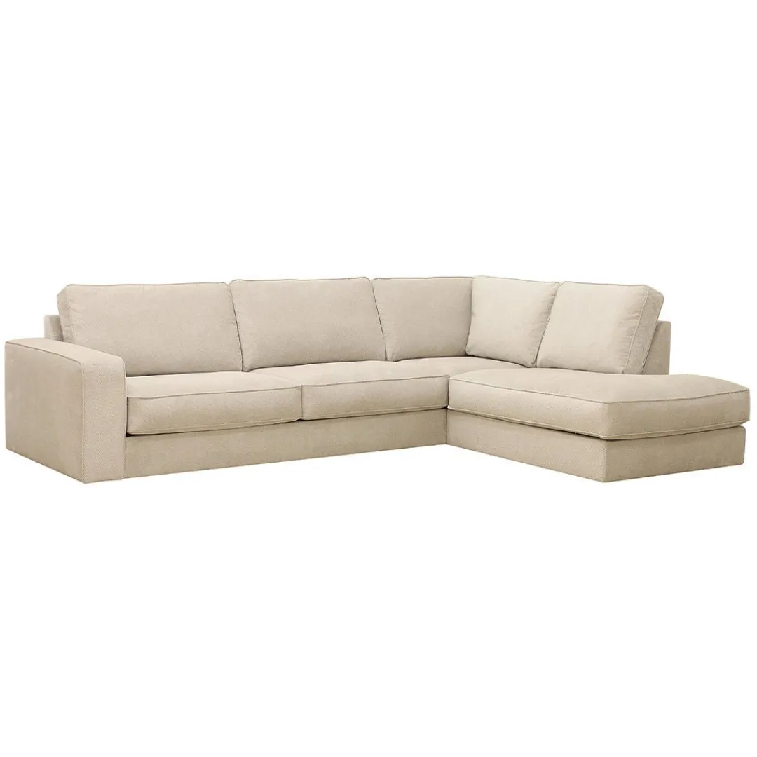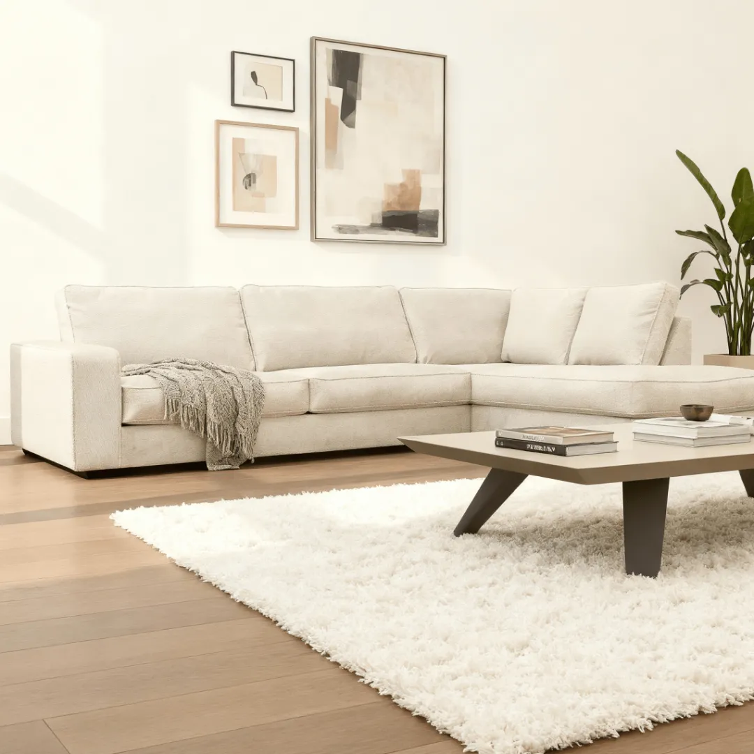 Hoekbank Colton 4-zits Rechts Crème is een royale en stijlvolle bank die jouw woonkamer meteen een luxe uitstraling geeft. De zachte Vinci-stof in een warme crèmekleur voelt comfortabel aan en zorgt voor een elegante look die makkelijk te combineren is met verschillende interieurstijlen.