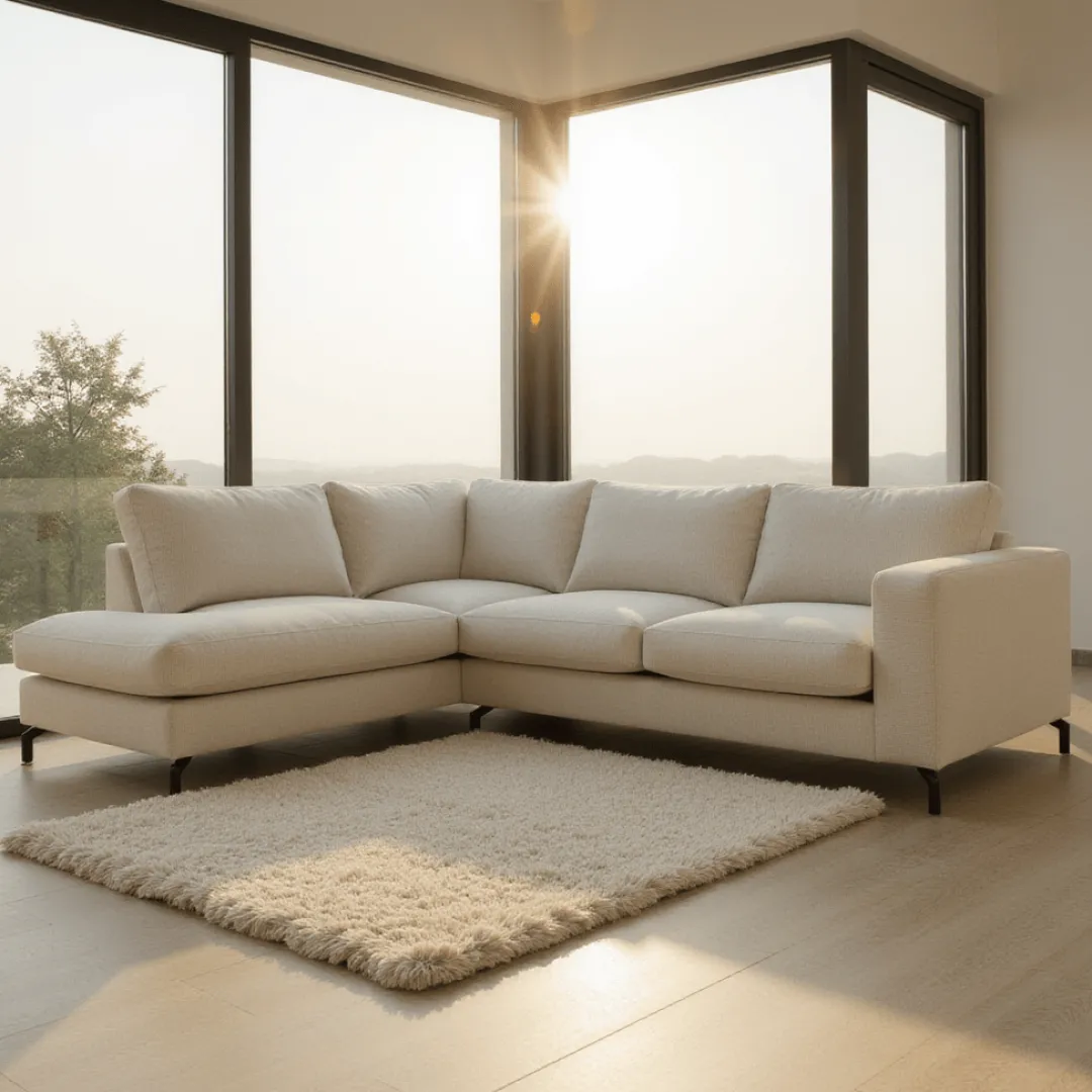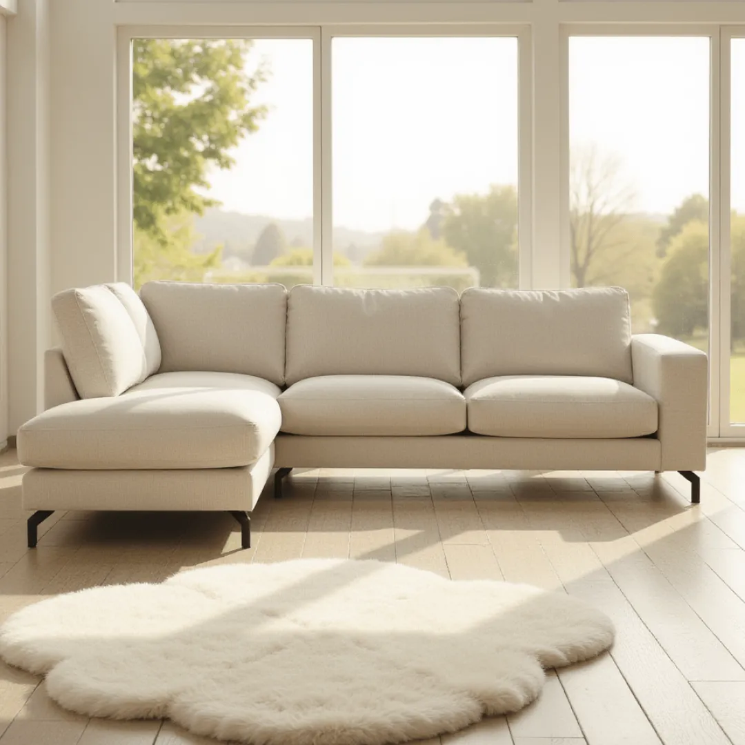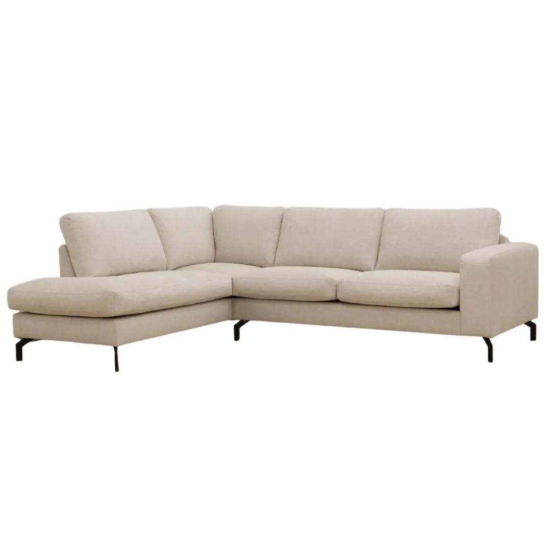 De 4-zits hoekbank Nora Links in crème is een stijlvolle en comfortabele toevoeging aan je woonkamer. De zachte crèmekleurige bekleding straalt rust en elegantie uit, waardoor de bank moeiteloos past binnen diverse interieurstijlen, van modern tot klassiek.