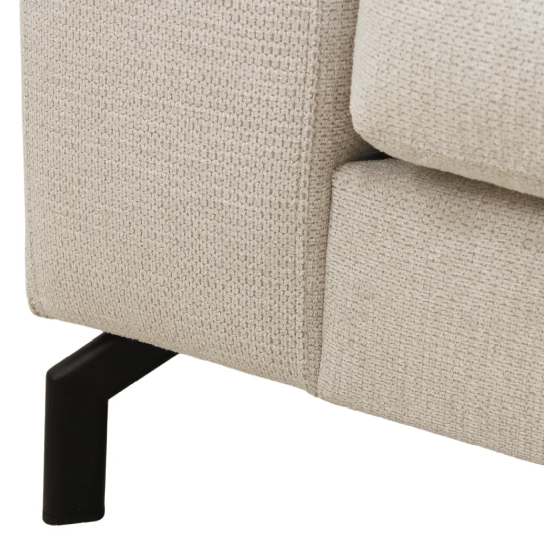 De Nora bank in uitvoering Links of Rechts heeft een totale breedte van 262 cm, een hoogte van 84 cm en een diepte van 206 cm. Met een zithoogte van 48 cm en een zitdiepte van 56 cm biedt dit model optimaal zitcomfort. De bekleding is uitgevoerd in aragon-stof (kleur 3), samengesteld uit 95% polyester / 5% nylon, met een Martindale van 50000 voor hoge slijtvastheid. De Nora is voorzien van Nosaq-vering, Comfort foam / SG 30 / fiberfill en een stevig frame van Massief zweeds sparhout. De metaal poten in Zwart van 15 cm maken het ontwerp compleet.