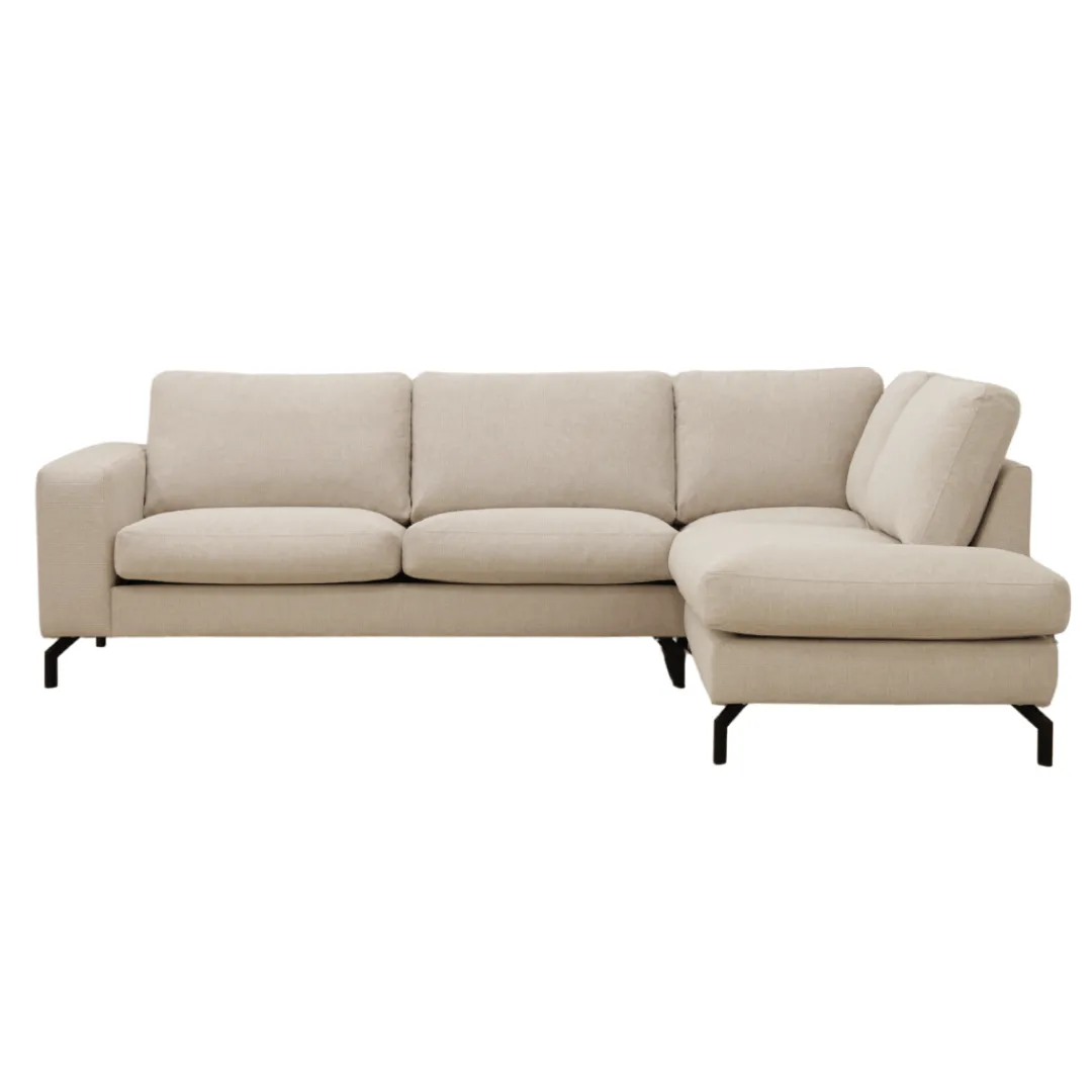 De 4-zits hoekbank Nora rechts in crème is een stijlvolle en comfortabele toevoeging aan je woonkamer. De zachte crèmekleurige bekleding straalt rust en elegantie uit, waardoor de bank moeiteloos past binnen diverse interieurstijlen, van modern tot klassiek.
