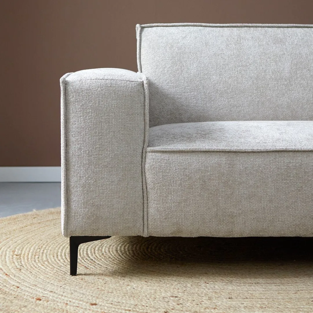 De Bank River Rechts Crème brengt modern design en comfort samen. Met Nosag-veren en een polyether schuimvulling zit je altijd stevig, terwijl de Dacron-toplaag zorgt voor dat extra beetje zachtheid. De krokodillenbek bevestiging houdt de bank strak en netjes in vorm.