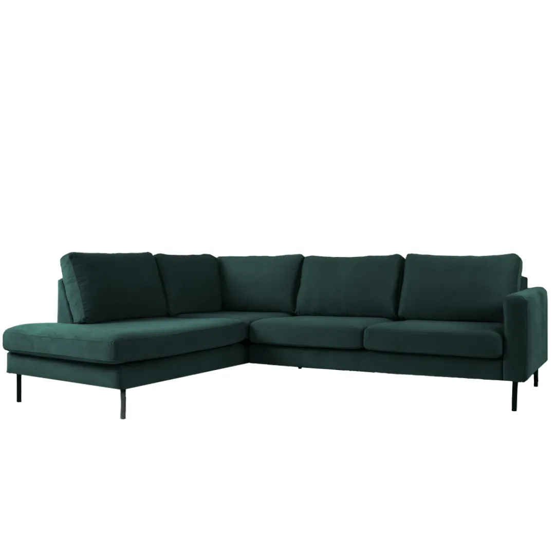 Breng warmte en elegantie in je interieur met hoekbank Sterre. Deze moderne L-vormige bank straalt klasse uit en biedt royaal comfort voor het hele gezin. Dankzij de zachte velours bekleding en het strakke design is Sterre dé eyecatcher in elke woonkamer.