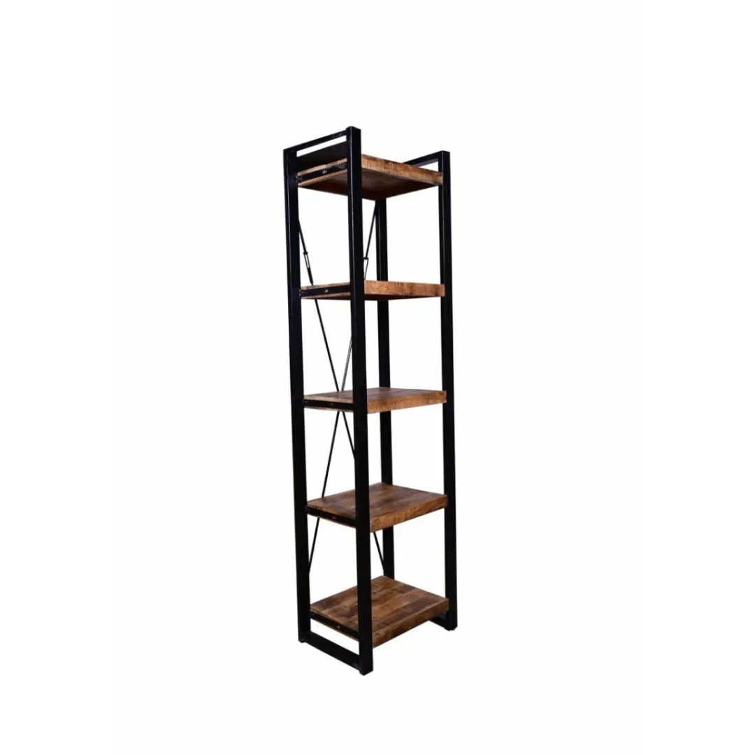 Boekenkast Britt is een stoere robuuste en industriële kast met massieve planken van mangohout. Door het stalen frame dat afgewerkt is met een zwarte poedercoating past hij in elke hedendaags interieur. De planken bieden genoeg ruimte om je mooiste boeken, decoratiestukken of verzameling op uit te stallen.