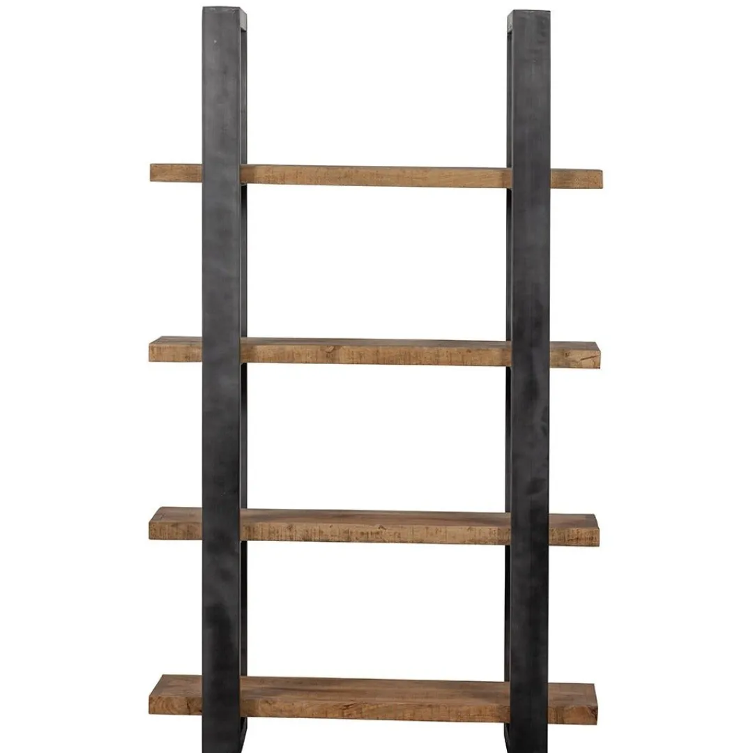 Door de combinatie van het stalen frame en het mangohout krijgt deze eenvoudige boekenkast een stoere en warme uitstraling. Hierdoor past de Durham Boekenkast werkelijk in ieder interieur! Doordat de kast aan beide kanten open is, is hij ook geschikt om te gebruiken als roomdivider.
