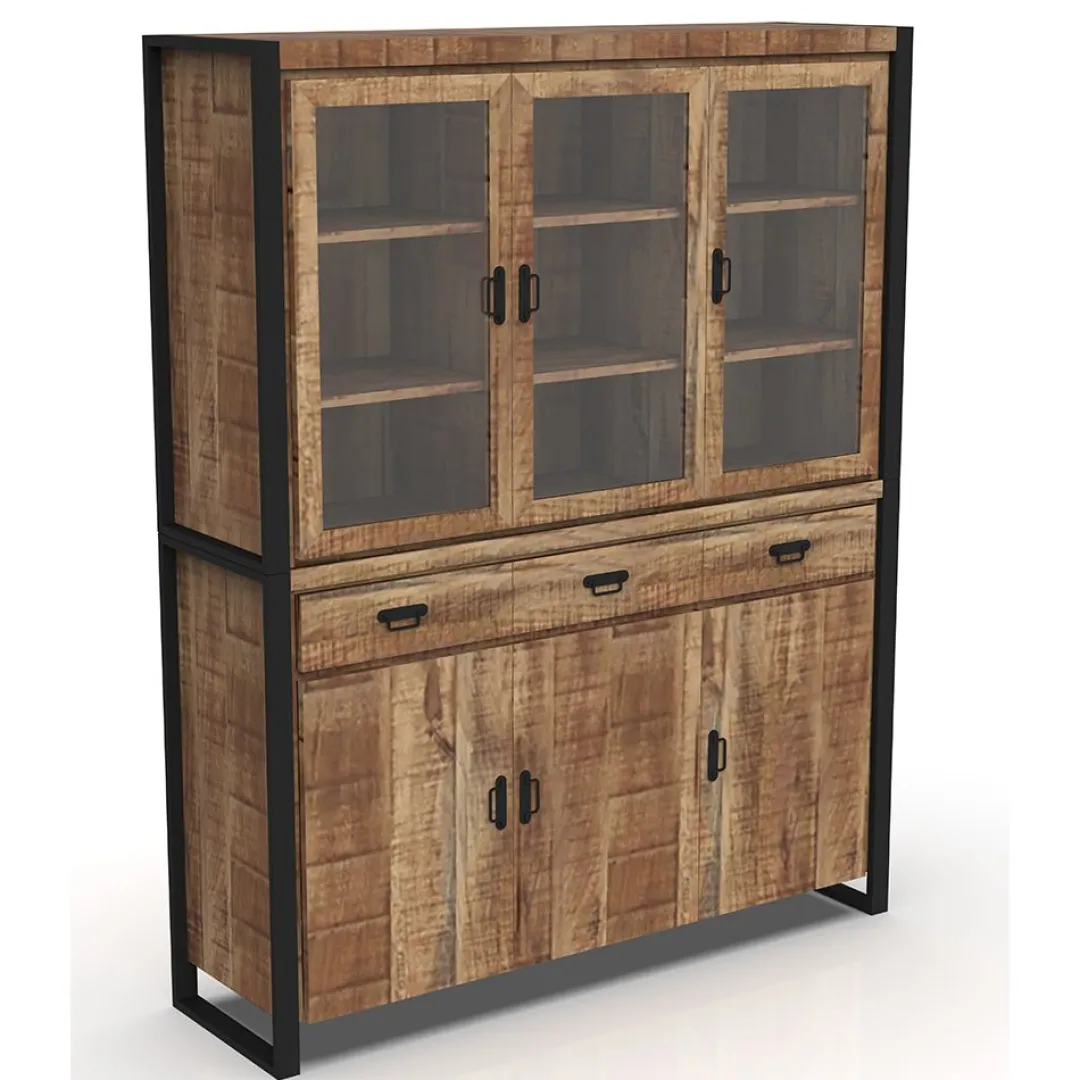 De kast wordt geleverd in twee delen die eenvoudig op elkaar geplaatst en bevestigd kunnen worden. Dankzij de stevige constructie van mangohout en het metalen frame garandeert de kast niet alleen een lange levensduur, maar ook een stabiele, solide plaatsing in je interieur.