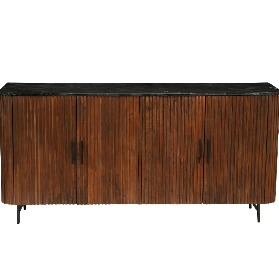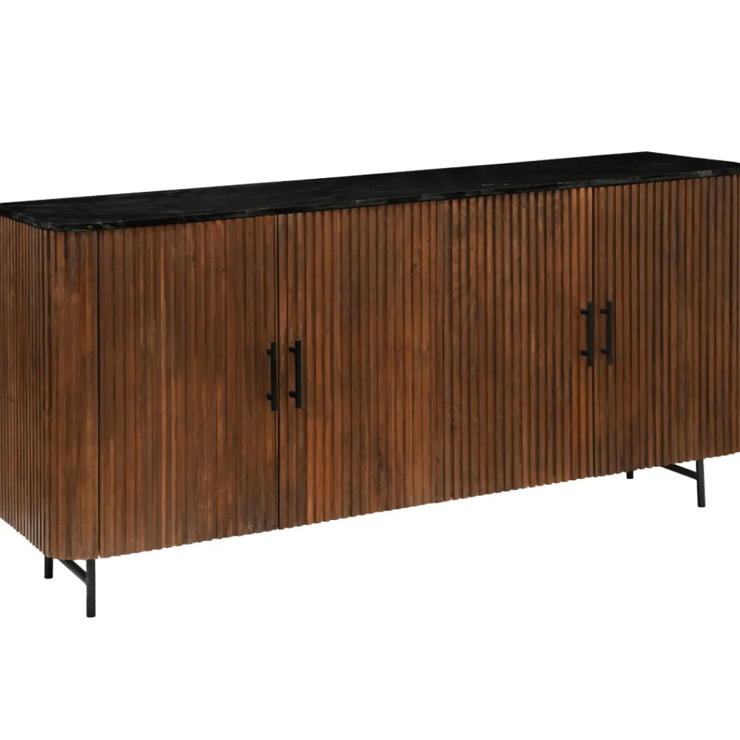 Het dressoir straalt met zijn verfijnde walnootkleurige afwerking, die niet alleen de natuurlijke pracht van het mangohout benadrukt, maar tevens langdurige duurzaamheid waarborgt. Het marmeren bovenblad voegt een vleugje weelde toe aan het geheel, waardoor het dressoir als een ware blikvanger in elke kamer fungeert.