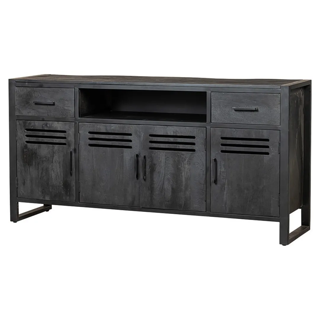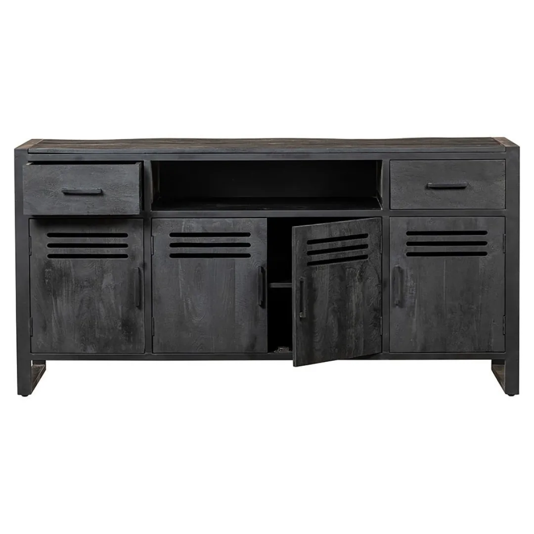 Dressoir Henderson is geïnspireerd op de oude lockerkasten die je misschien nog kent van vroeger. De deurtjes in combinatie met het zwarte mangohout en de stalen frames geven je woon- of slaapkamer een stoere en industriële uitstraling. In de lades en in de ruime vakken achter de deurtjes is genoeg ruimte om van alles in op te bergen, zoals belangrijke papieren, knutselspullen of serviesgoed.