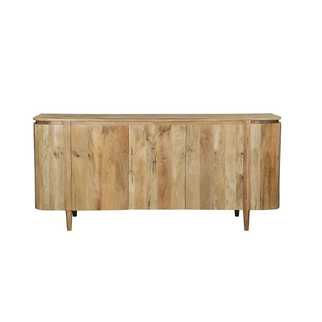 Mangohouten Dressoir Pilano 180 cm brengt warmte en karakter in je interieur. De afgeronde vormen geven het meubel een zachte en moderne uitstraling.