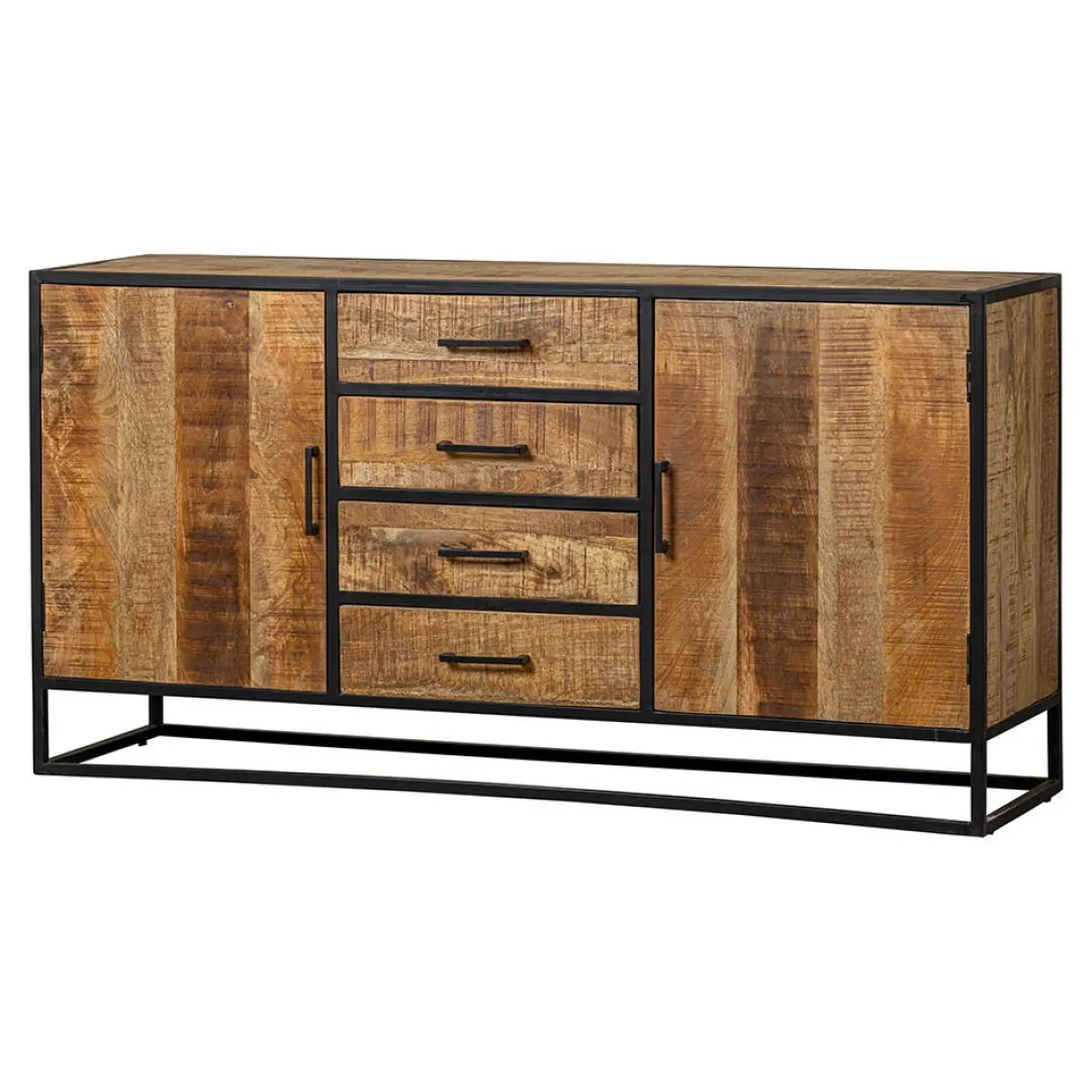 Dit stoere dressoir uit onze San Antonio collectie zal de blikvanger zijn van iedere woning. De kast heeft een fraai ontwerp van twee deuren aan de zijkanten met vier lades in het midden, waarmee het dressoir beschikt over veel opbergruimte voor allerlei eigendommen.