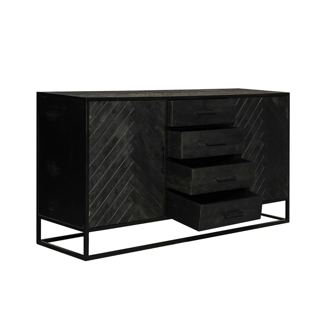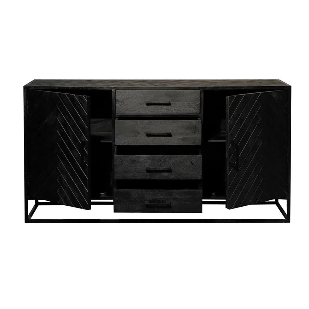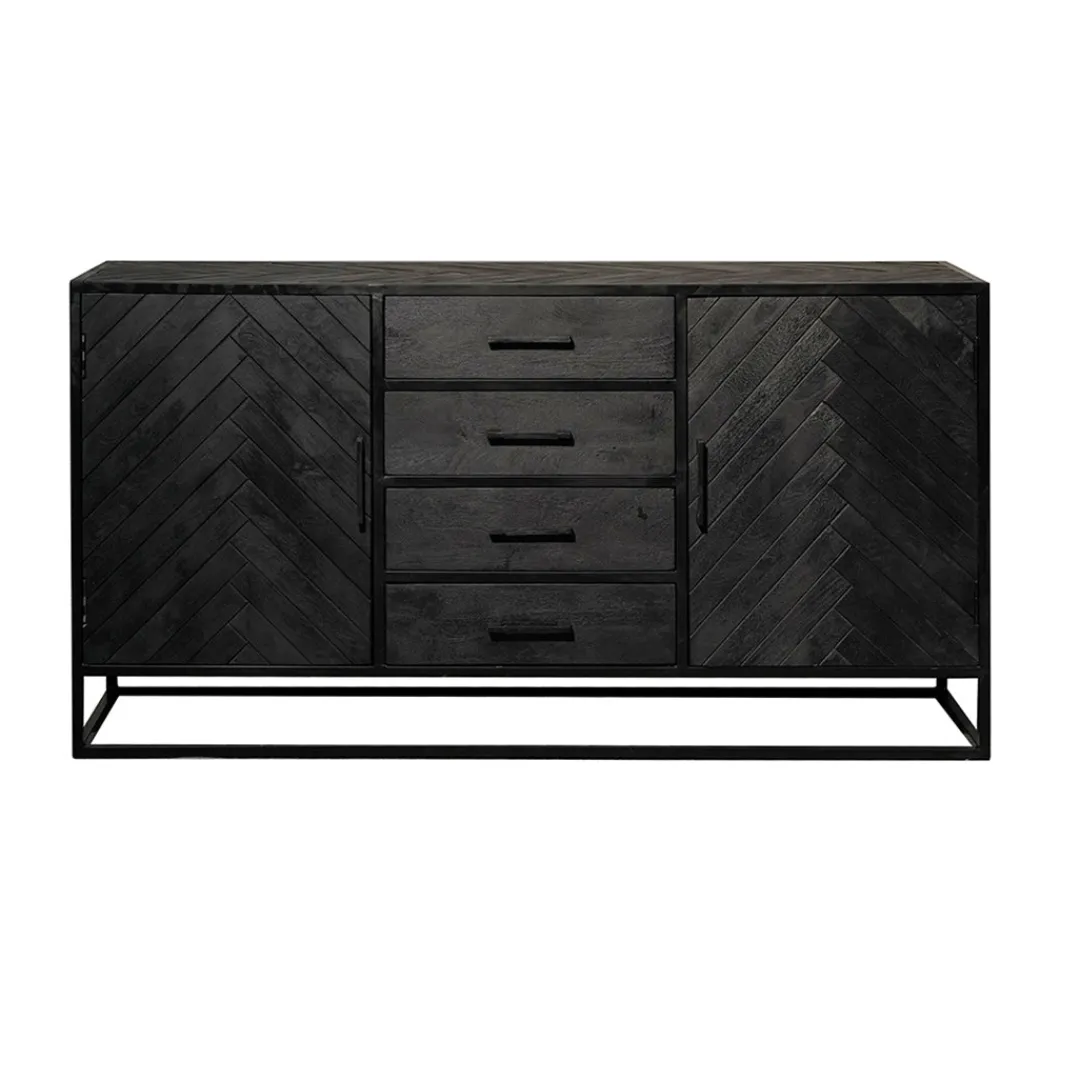 Ben je op zoek naar een zwart dressoir, maar wil je net wat anders dan de andere zwarte dressoirs uit onze collectie? Kies dan voor dit chique, ruimtelijke dressoir met visgraat motief. Verder beschikt het dressoir over vier ruime lades en achter ieder deurtje twee grote vakken om van alles op te bergen. Zo heb je een fantastisch nieuw dressoir en blijft de woning ook nog eens opgeruimd!