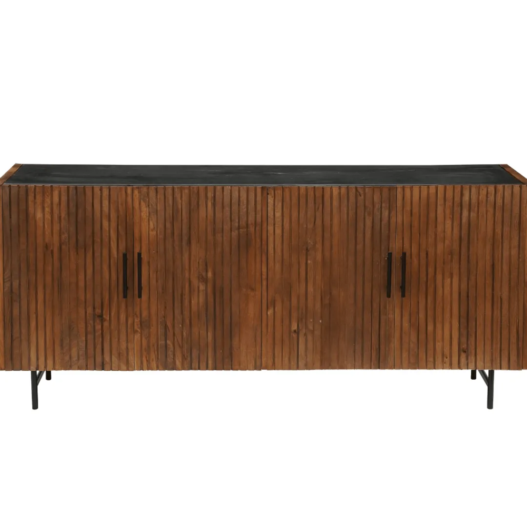 Gemaakt van hoogwaardig mangohout, dat zowel bekend staat om zijn duurzaamheid als natuurlijke schoonheid, onderscheidt dit dressoir zich door zijn prachtige houtnerf en warme tinten.