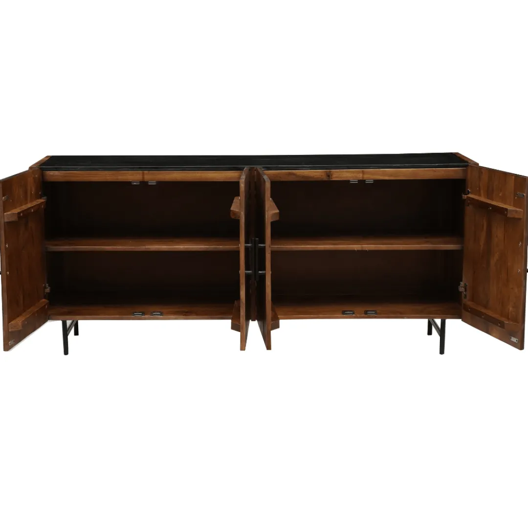 Het marmeren bovenblad voegt een vleugje luxe toe en maakt het dressoir perfect voor het tentoonstellen van decoratieve voorwerpen, het plaatsen van een lamp of het binnen handbereik houden van dagelijkse benodigdheden.