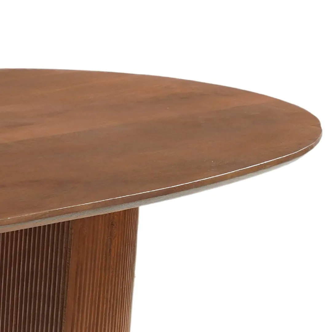 Eettafel Chiara is een tijdloze toevoeging aan je interieur. Het massieve mangohout, afgewerkt met een walnootkleurige laklaag, geeft de tafel een warme en stoere uitstraling. Het ovale blad zorgt voor een moderne touch en maakt de tafel een echte blikvanger in de eetkamer.