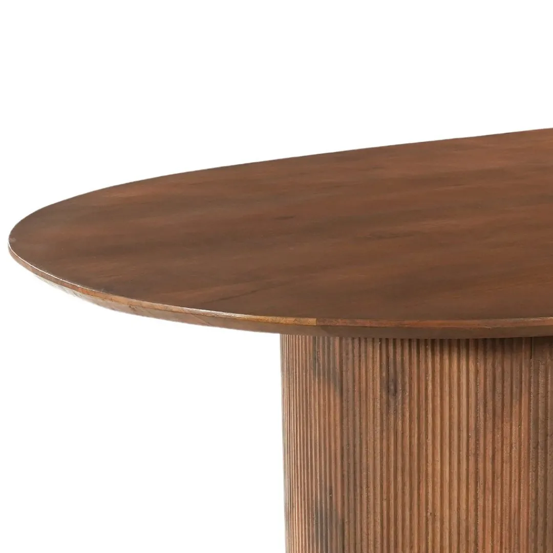 Eettafel Chiara is een stijlvolle en tijdloze keuze voor je interieur. Gemaakt van massief mangohout en afgewerkt met een walnootkleurige laklaag, straalt deze tafel warmte en karakter uit. Het ovale blad geeft een moderne twist en maakt de tafel tot een echte blikvanger in de eetkamer.