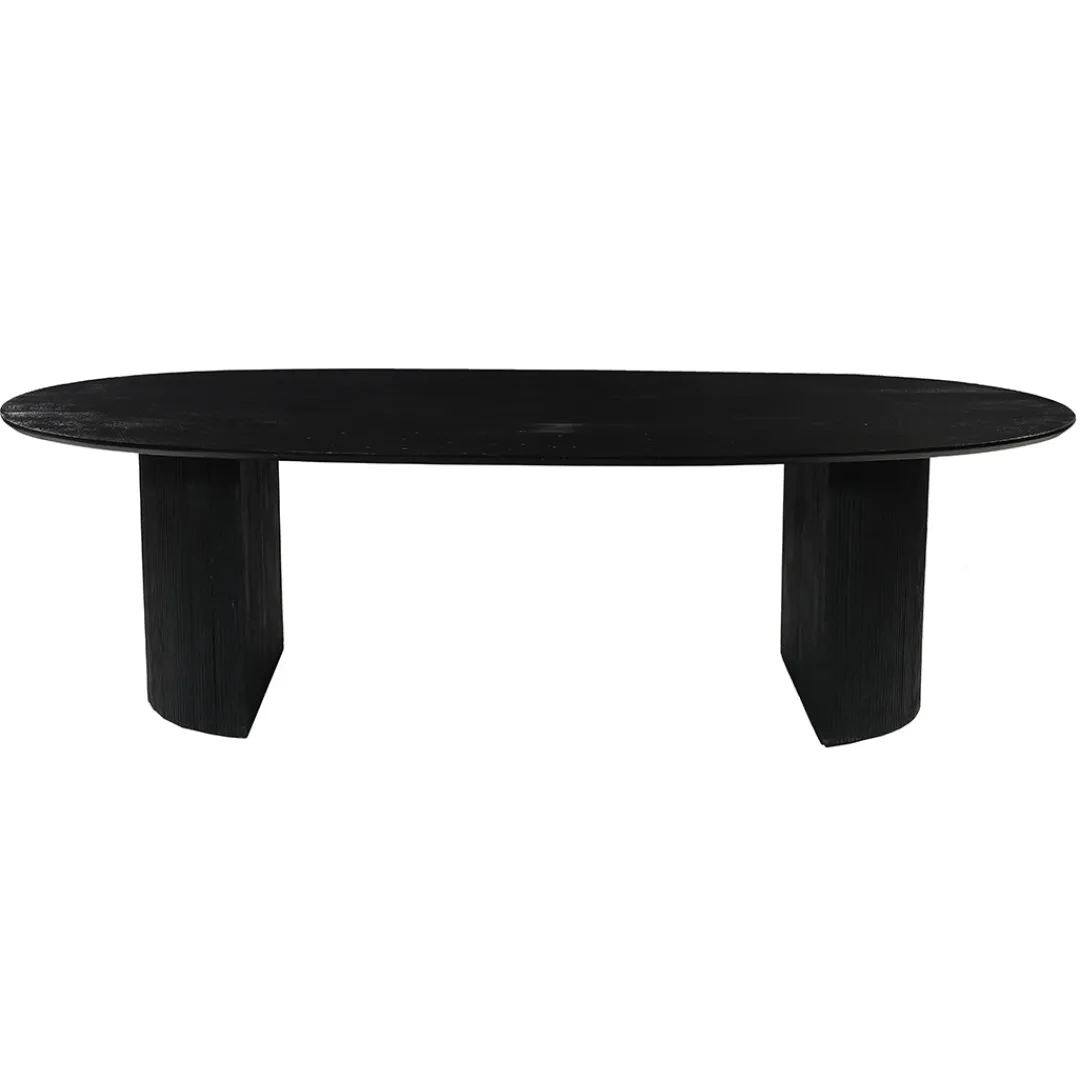 Eettafel Chiara is een elegante aanvulling op je interieur. Het ovale blad van massief mangohout, afgewerkt in een diepzwarte kleur, geeft de tafel een luxe en eigentijdse uitstraling.