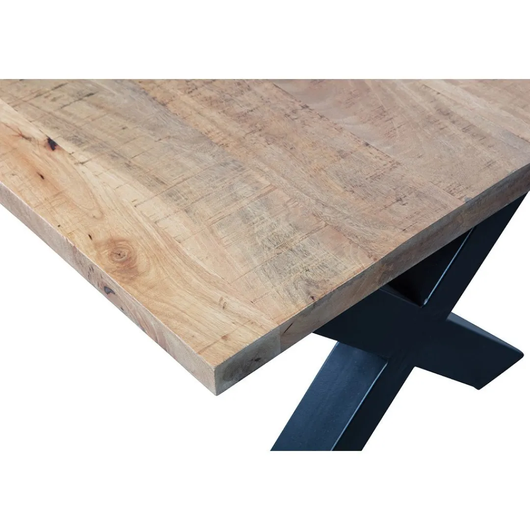 Over het mangohout worden meerdere lagen houtolie en een blanke, natuurlijke bijenwas aangebracht om het hout te beschermen tegen vocht, vuiligheid en kringen. De X-poten zijn gemaakt van zwart gepoedercoat metaal.