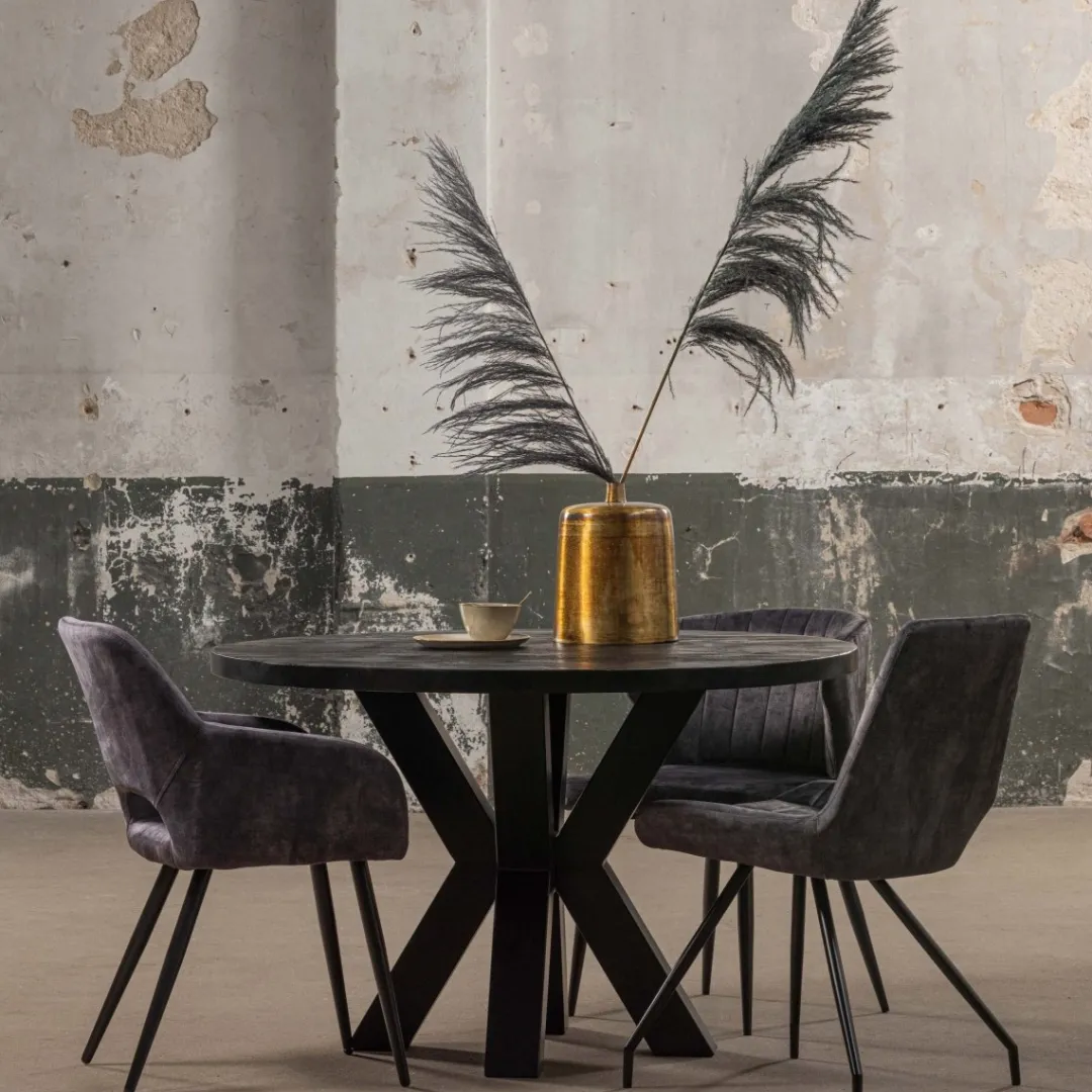 Ronde eettafels vormen de perfecte basis voor de leukste avonden, doordat gesprekken eenvoudig kunnen worden gevoerd met de hele tafel. De zwarte tafel vormt een fraai geheel en door zijn vrij compacte formaat is vast nog wel wat ruimte te vinden voor deze stoere, ronde eettafel!