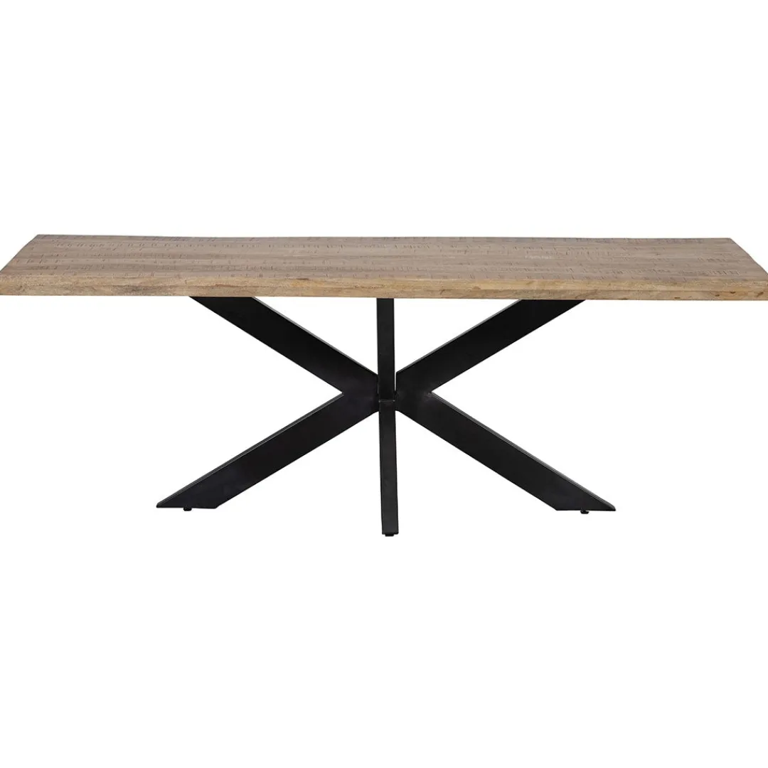 Voor de grootste eettafel uit de Memphis-collectie zal iedereen wel een plek in de eetkamer willen zoeken. De tafel is stoer, groots en stijlvol tegelijk. Het grote, robuuste tafelblad wordt gedragen door een fraaie, zwartmetalen matrixpoot die voor een ruimtelijk effect in het huis zorgt.