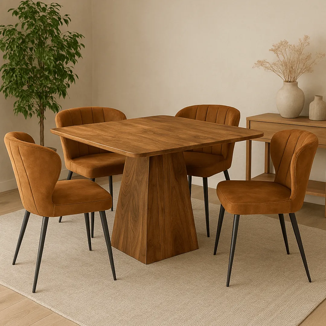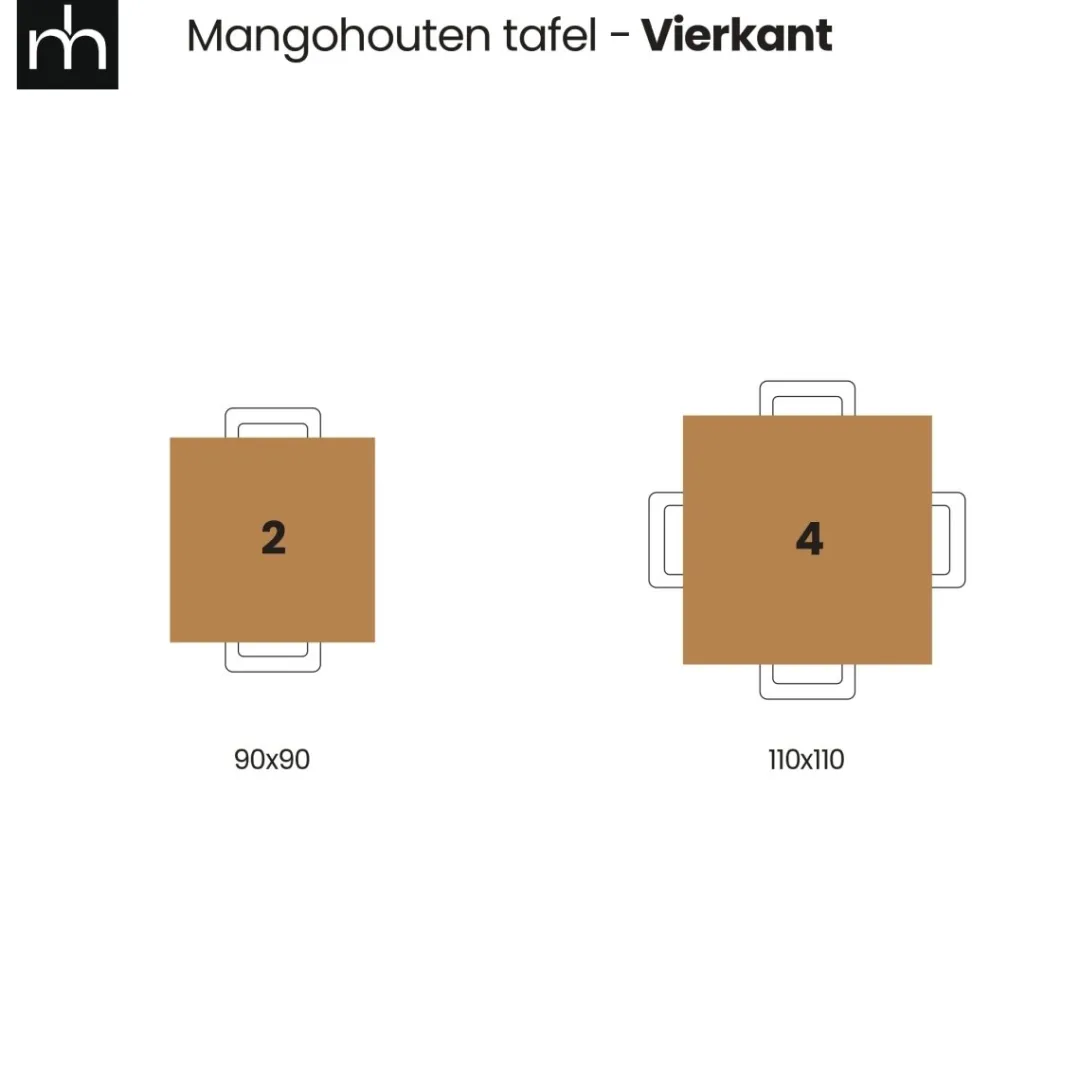Ontdek de charme van de Mangohouten eettafel Nova in het formaat 90×90 cm. Deze vierkante tafel is gemaakt van massief mangohout en straalt een warme, natuurlijke look uit die perfect past in zowel moderne als industriële interieurs. Het robuuste tafelblad in combinatie met het strakke onderstel zorgt voor een stoere, maar stijlvolle uitstraling.