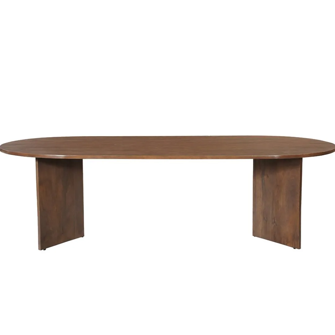Eettafel Sara is een stijlvolle en veelzijdige toevoeging aan jouw interieur. Het massieve mangohout, afgewerkt met een walnootkleurige laklaag, geeft de tafel een warme en robuuste uitstraling. Het ovale blad zorgt voor een moderne, verfijnde look die elke eetkamer tot leven brengt.