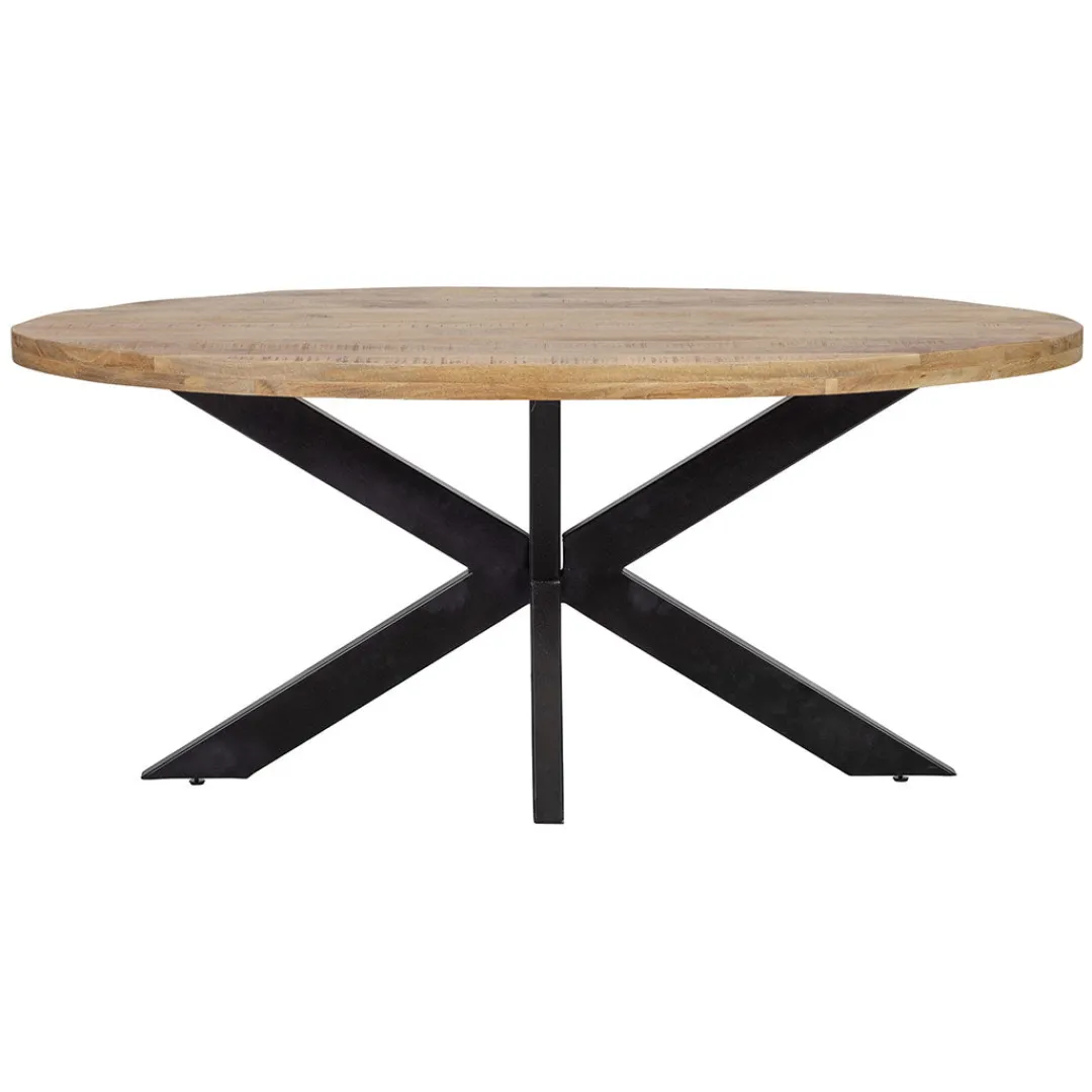 Op zoek naar een grote eettafel die toch weinig ruimte inneemt? Deze ruime, ovale tafel is dan perfect voor jou. Het ovalen blad neemt namelijk veel minder ruimte in dan een rechthoekige eettafel en het ziet er ook nog eens enorm stijlvol uit door de fraaie metalen matrixpoot!
