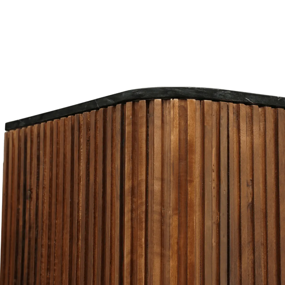De Mangohouten Kast Austin 90 cm is een prachtig stuk meubilair dat zowel functionaliteit als stijl combineert. Met een rijke walnootkleurige laklaag en een elegante marmeren bovenkant voegt deze kast een vleugje luxe toe aan elke ruimte.