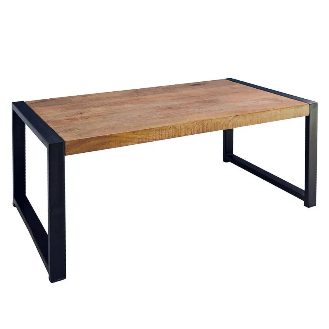 Over het massieve mangohout worden meerdere lagen houtolie en een blanke, natuurlijke bijenwas aangebracht om het hout te beschermen tegen vocht, vuiligheid en kringen. Het tafelblad heeft een dikte van ongeveer 5 centimeter. De poten zijn gemaakt van zwart gepoedercoat metaal.